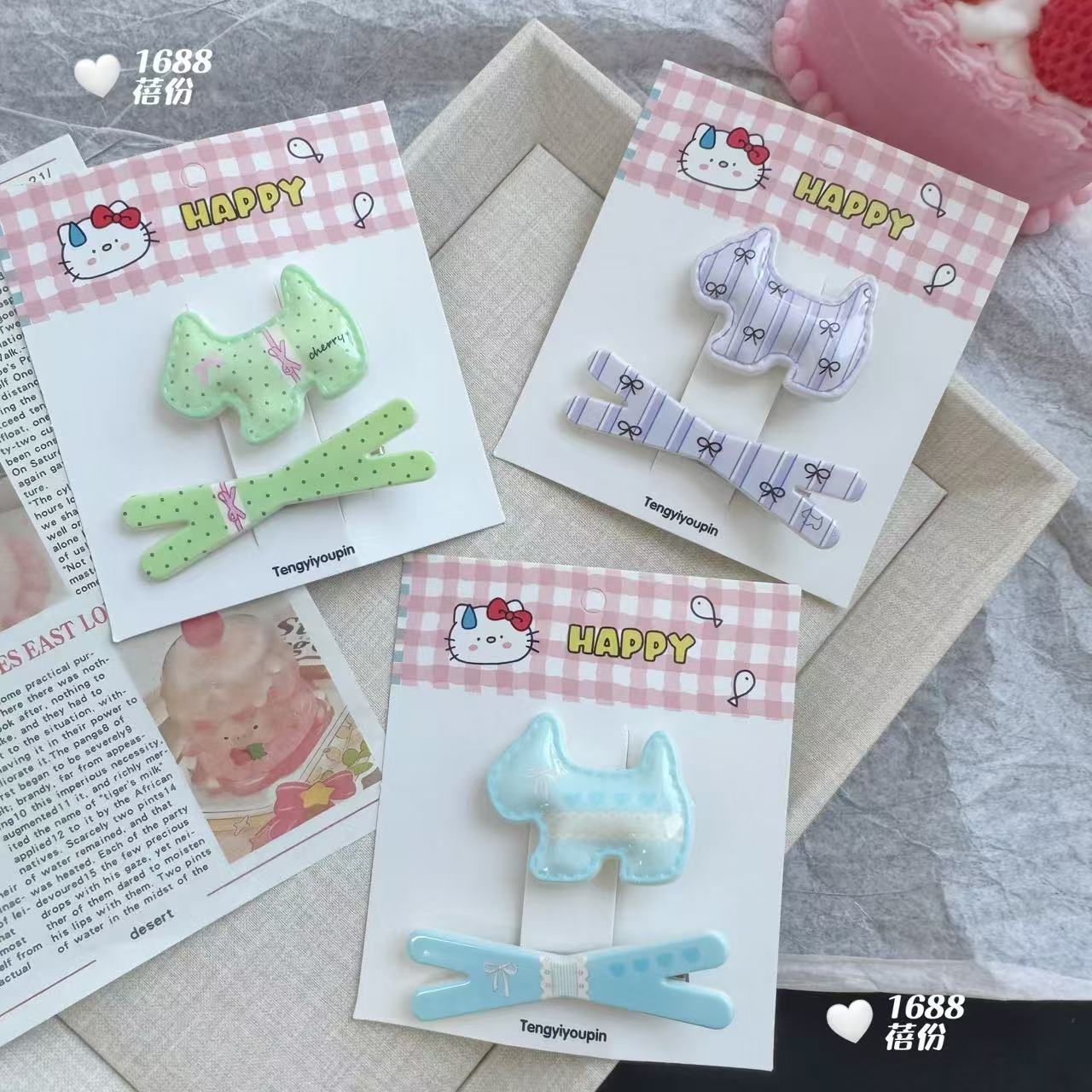 귀여운 만화 도파민 개 헤어핀 세트 소녀의 하트 뱅 클립 클립 달콤한 올매치 헤어핀 덕빌 클립스토어 가기