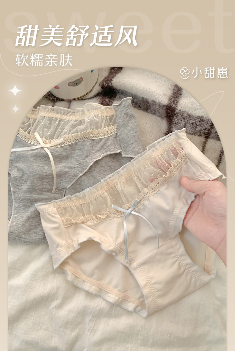 달콤한 일본 가리 스타일 모든 코튼 크로치 봄과 여름 새로운 편안한 순수 코튼 레이스 엣지 여자를위한 순수 섹시한 속옷
