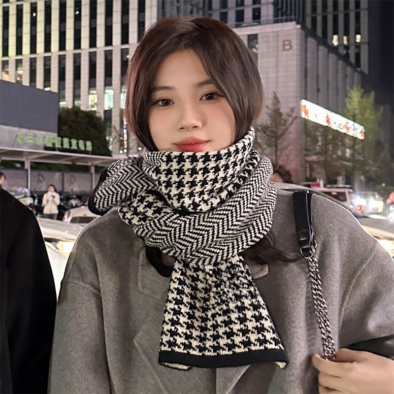 하운스투스 스카프 가을과 겨울 여자 하이 엔드 센스 올매치 두꺼운 한국식 격자 한국식 학생 따뜻한 스카프