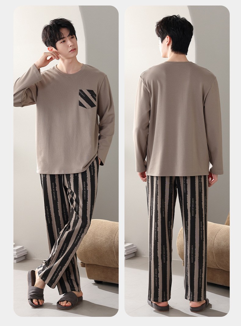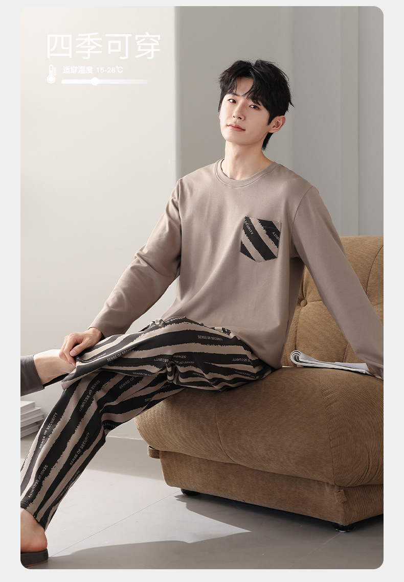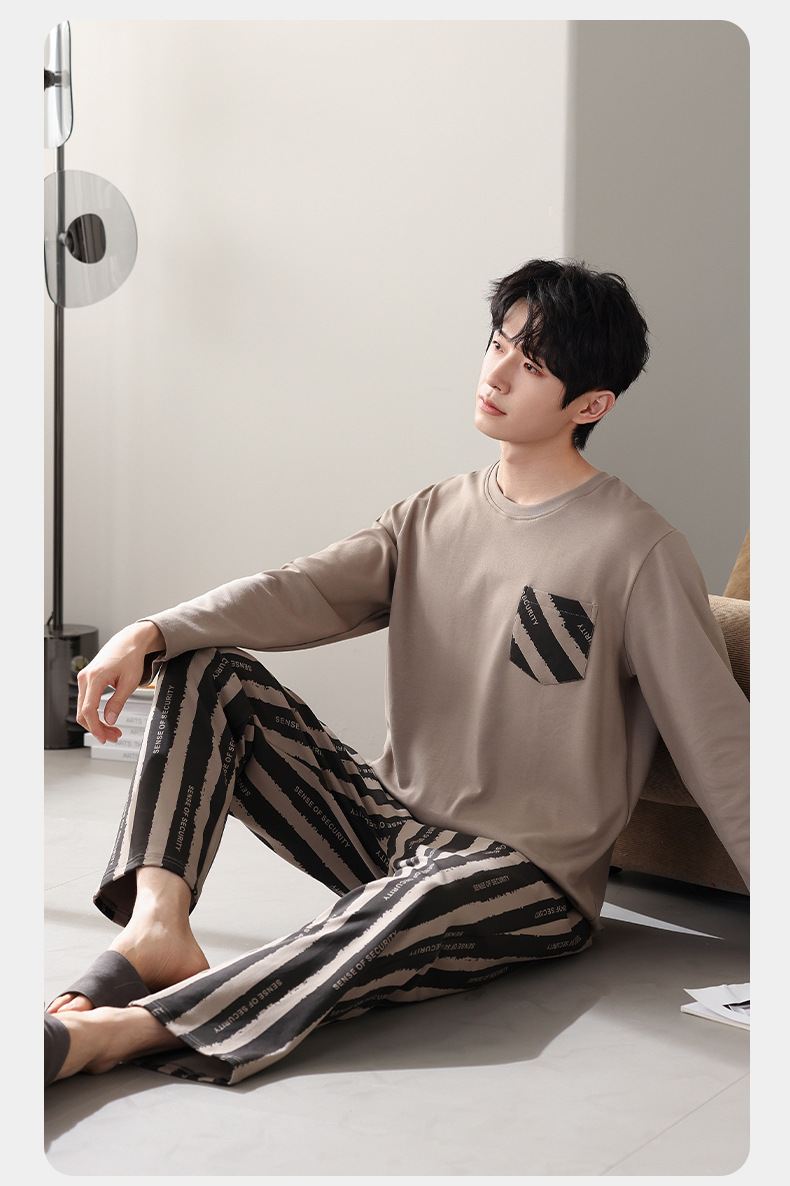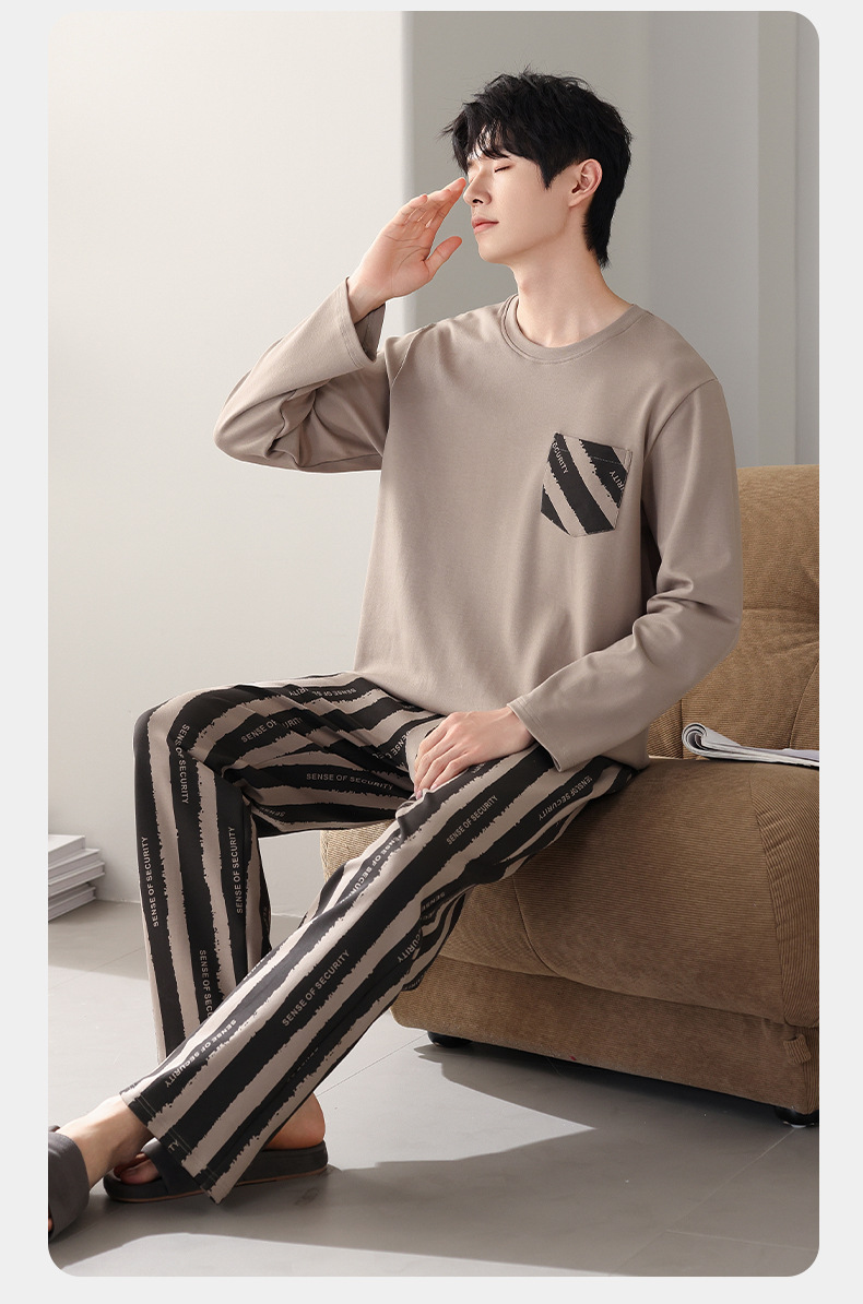 잠옷 남자의 봄과 가을면 긴 소매 남자의 가을 2025 새로운 남자의 가을과 겨울 얇은 플러스 사이즈 홈 옷스토어 가기