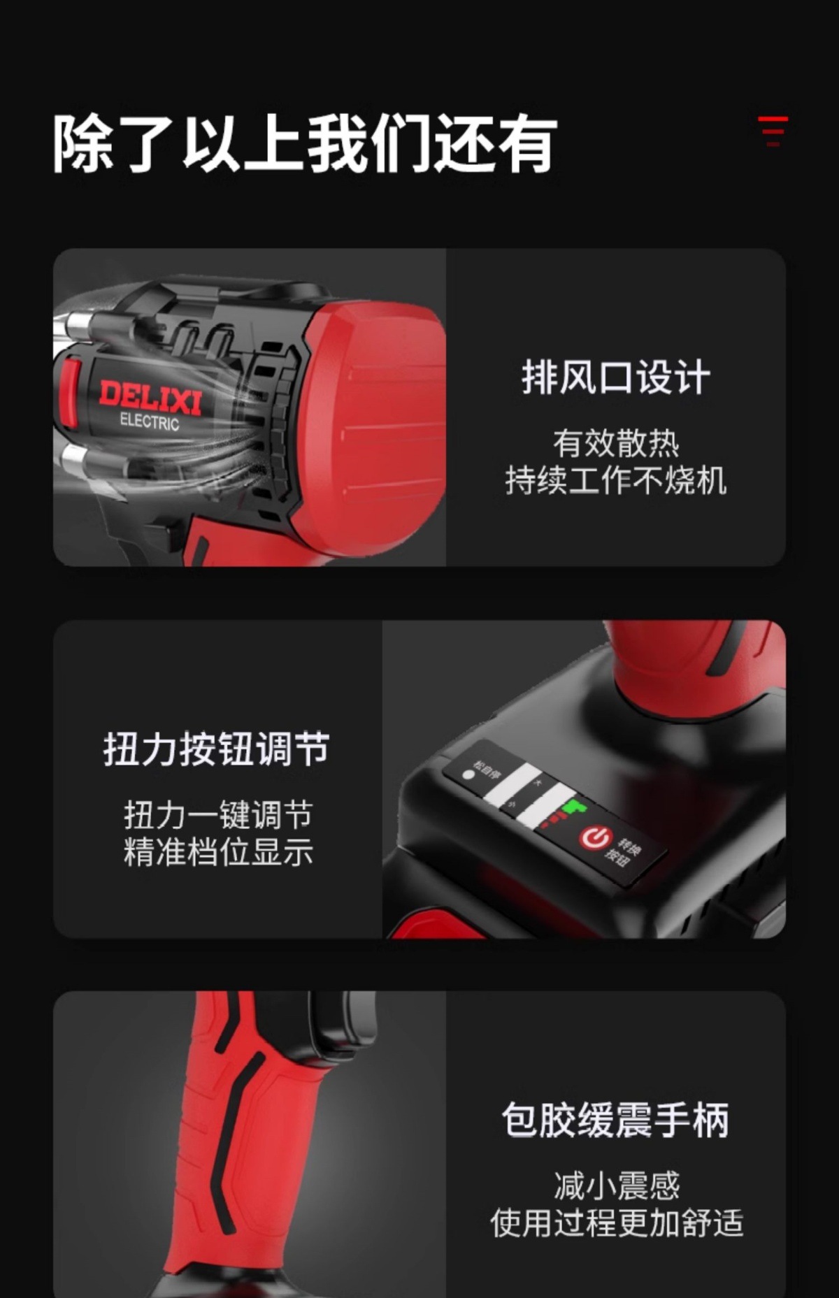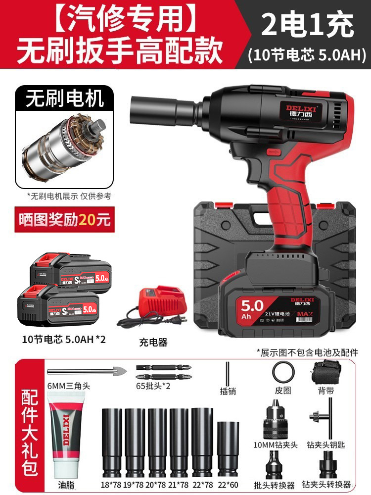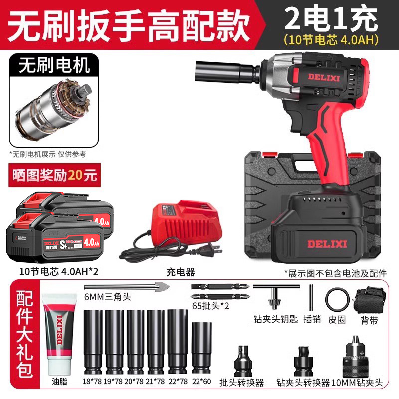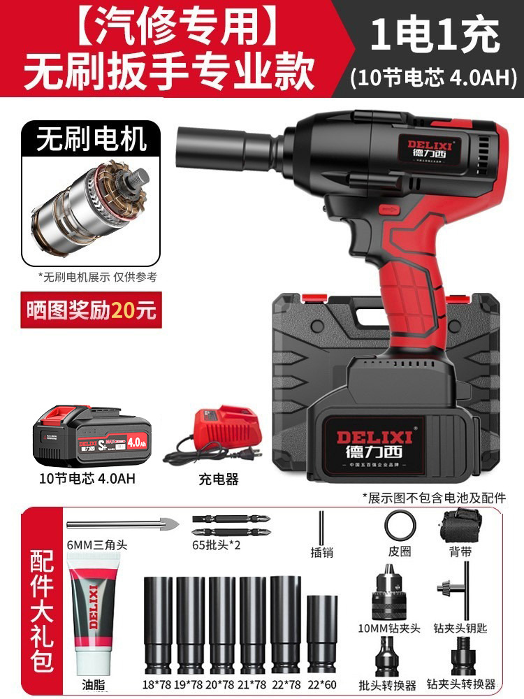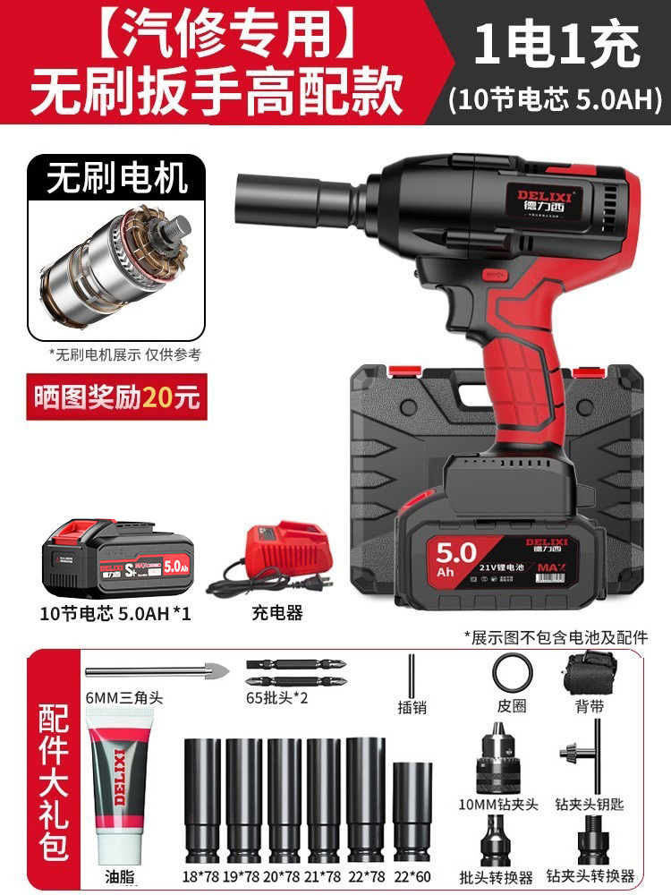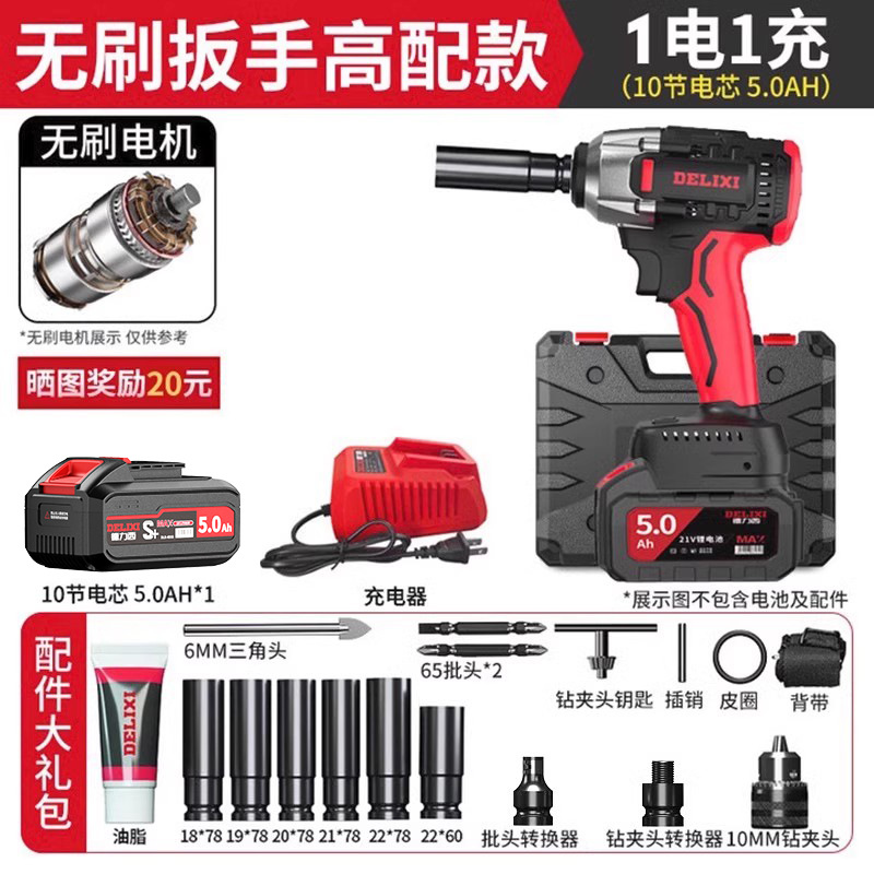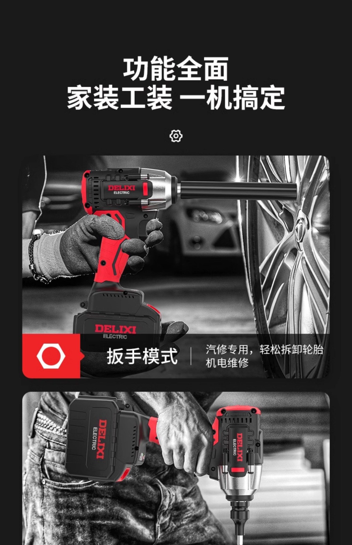 Delixi 브러시리스 전기 렌치 대형 토크 타이어 자동 수리 도구 리튬 공기 대포 작은 충격 충전 보드