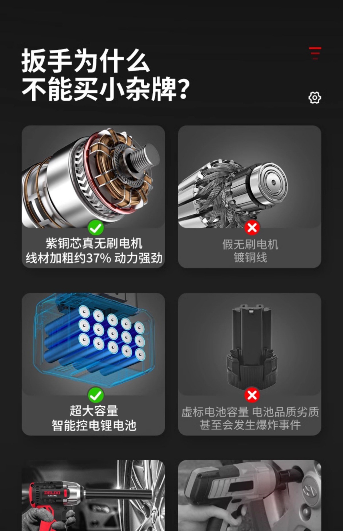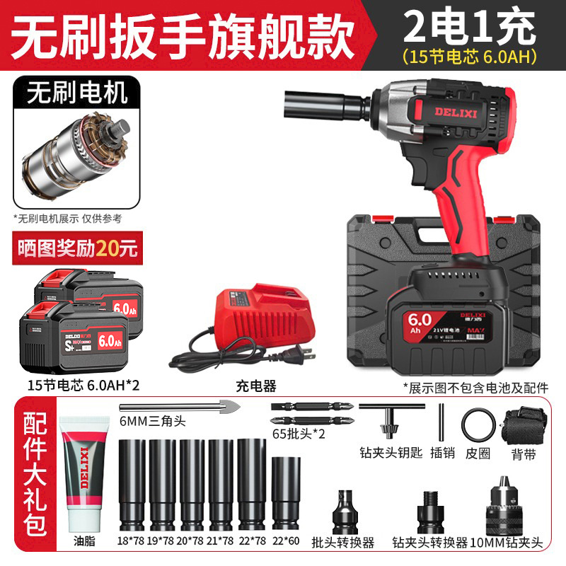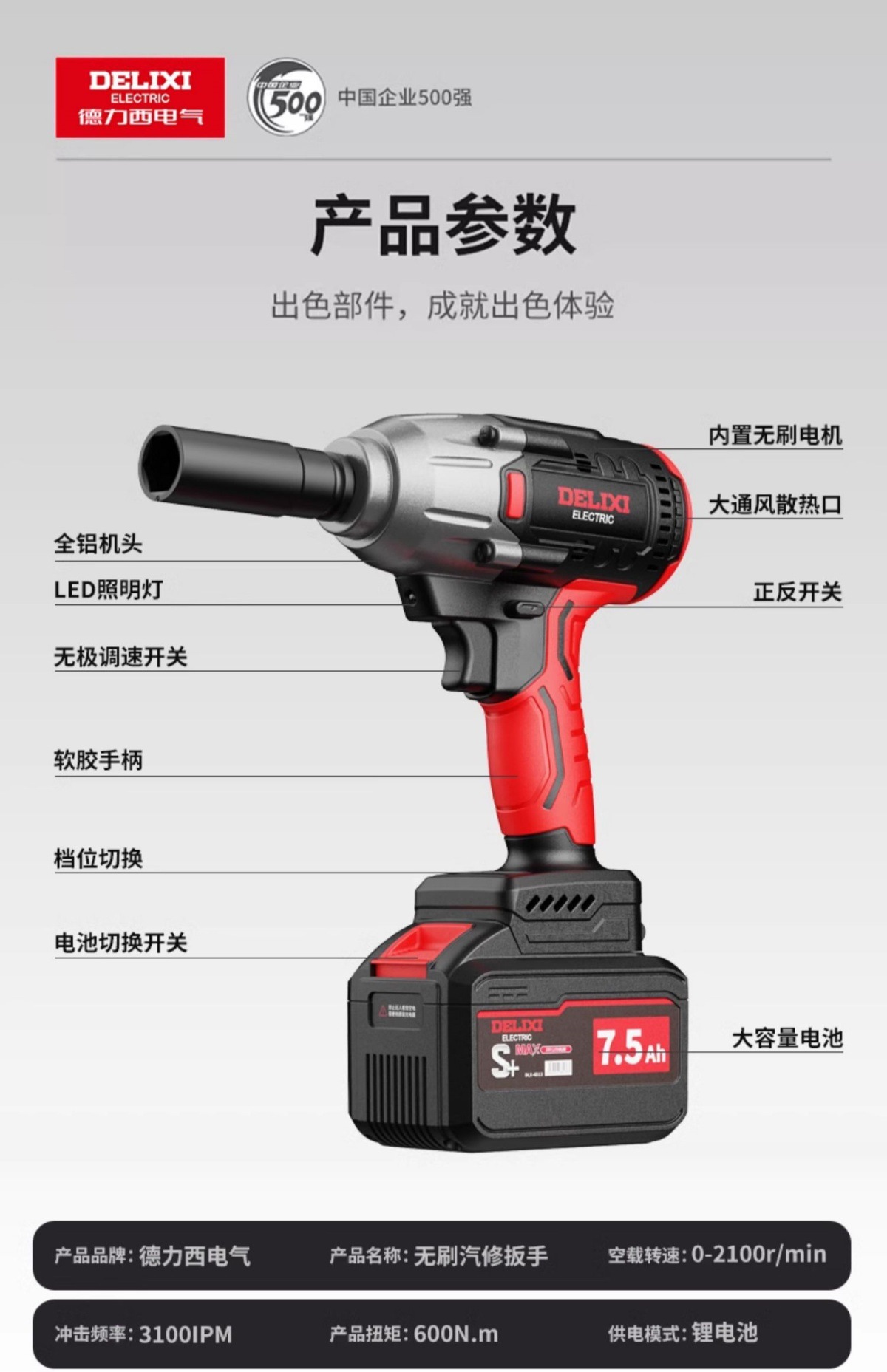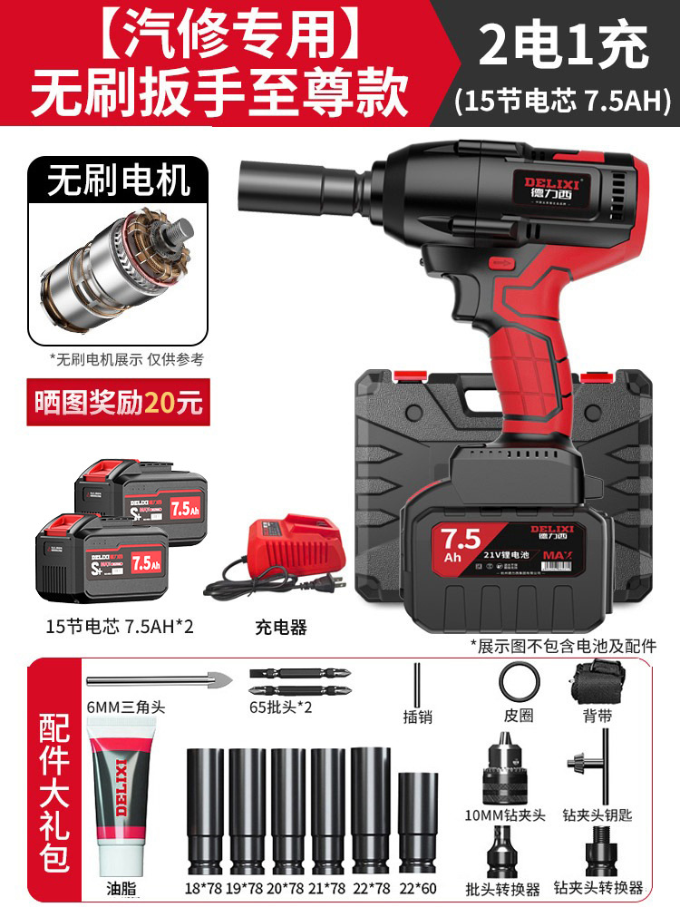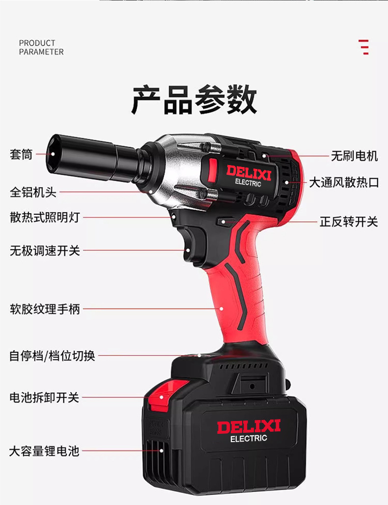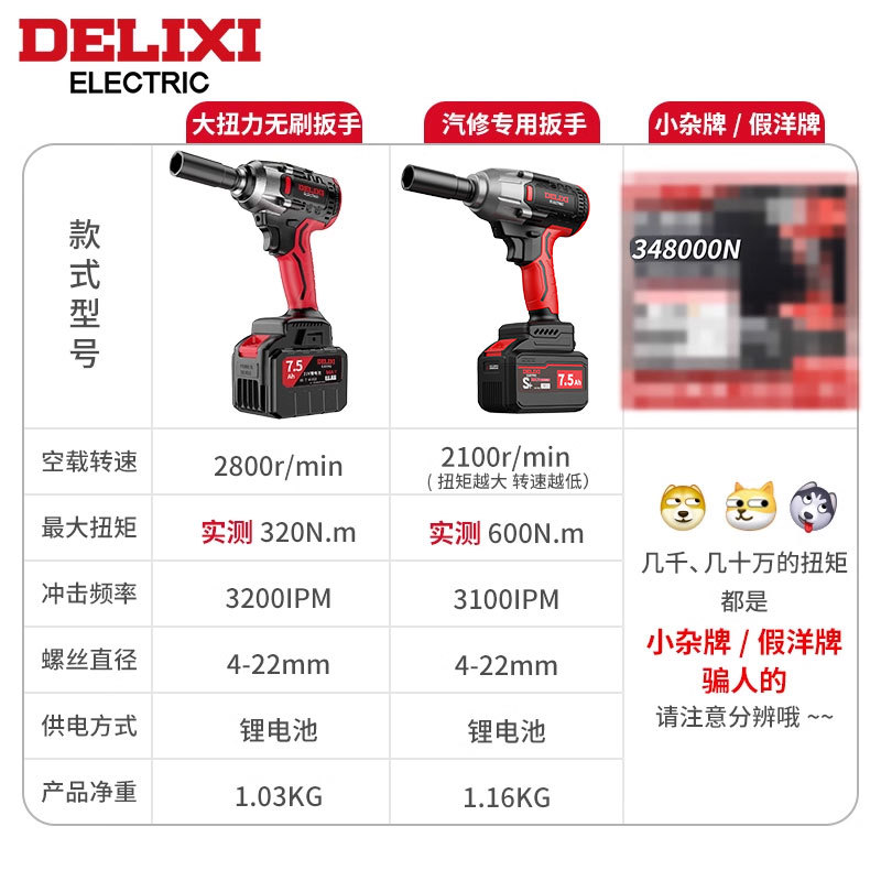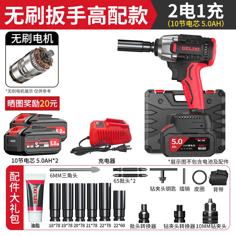 Delixi 브러시리스 전기 렌치 대형 토크 타이어 자동 수리 도구 리튬 공기 대포 작은 충격 충전 보드