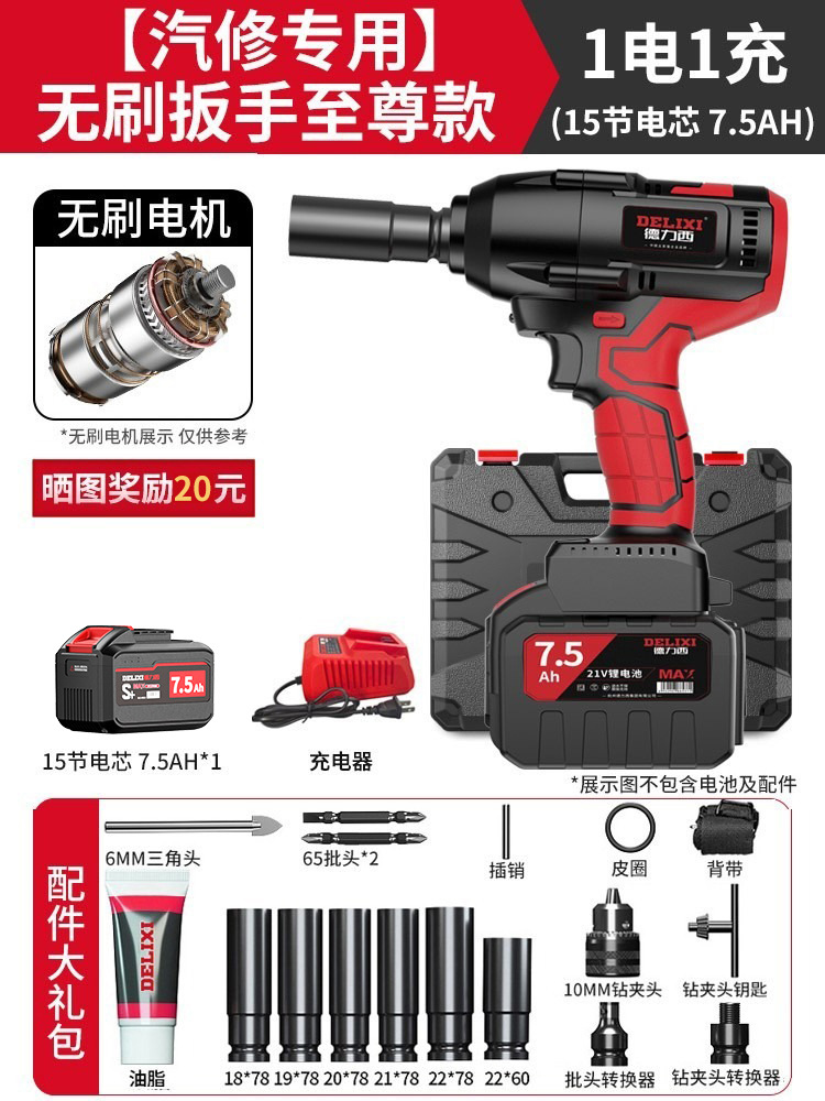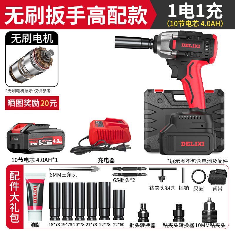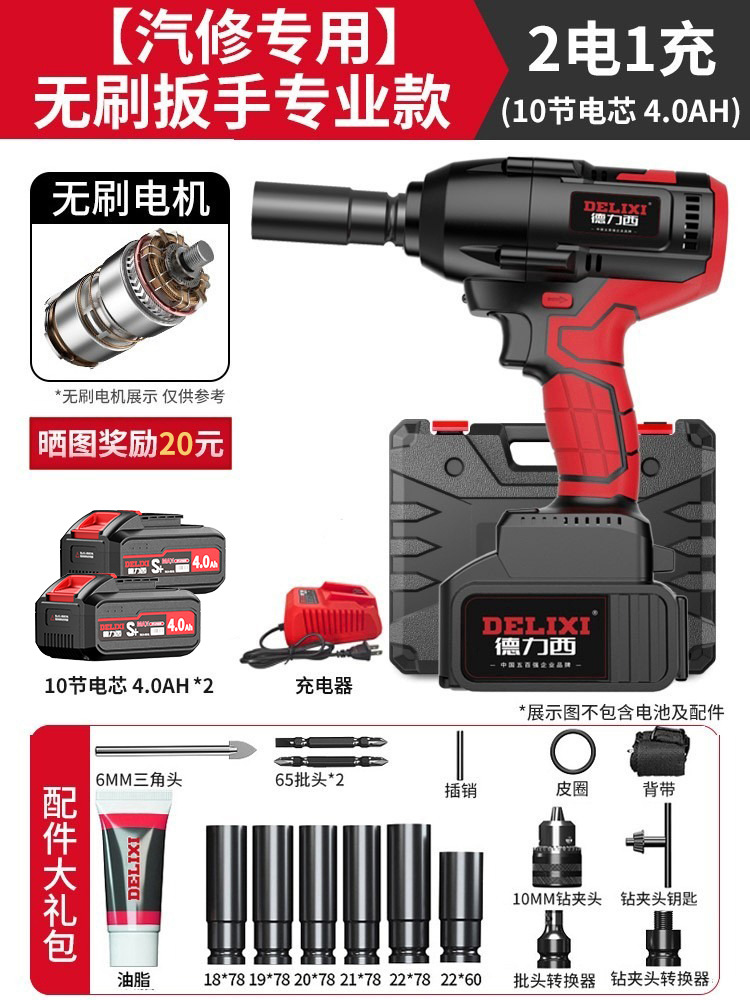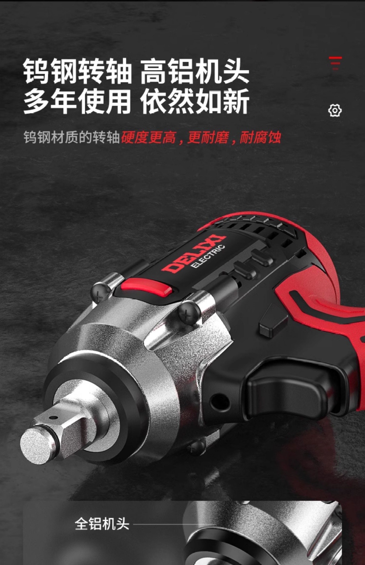 Delixi 브러시리스 전기 렌치 대형 토크 타이어 자동 수리 도구 리튬 공기 대포 작은 충격 충전 보드스토어 가기