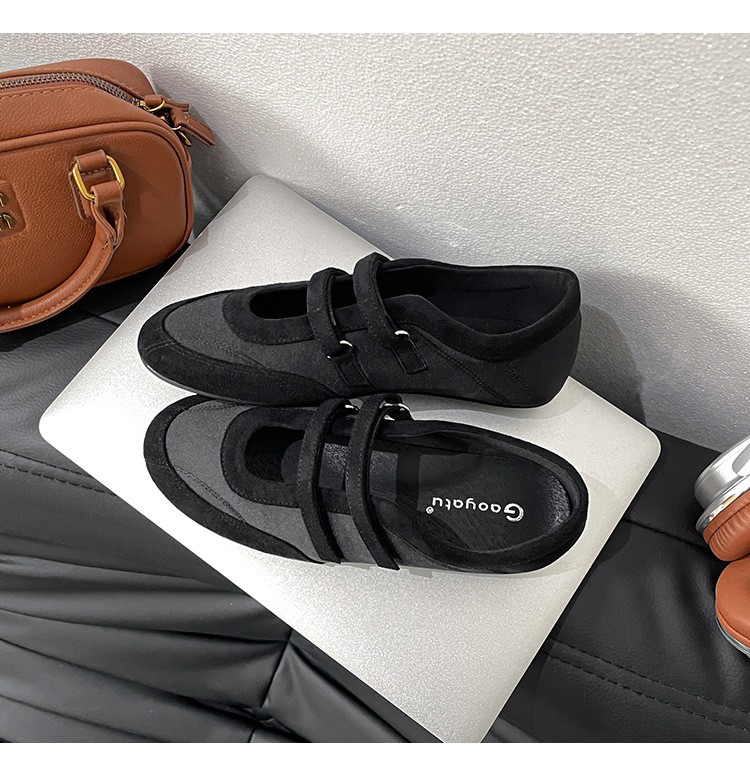 2025 새로운 여성 신발 레트로 레드 프렌치 메리 제인 신발 여성 벨크로 캐주얼 발레 신발 플랫 싱글 신발스토어 가기