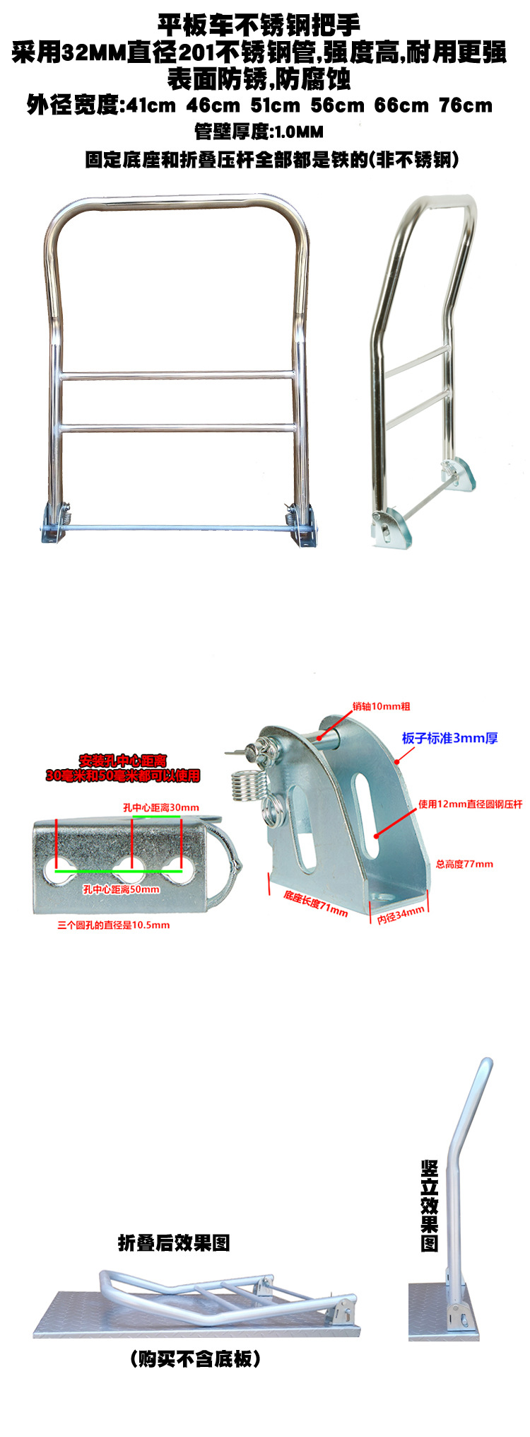 트롤리 플랫 베드 트럭 스테인레스 스틸 핸들 접이식 팔걸이 트롤리 이동식 핸들 액세서리 두꺼운 손잡이스토어 가기