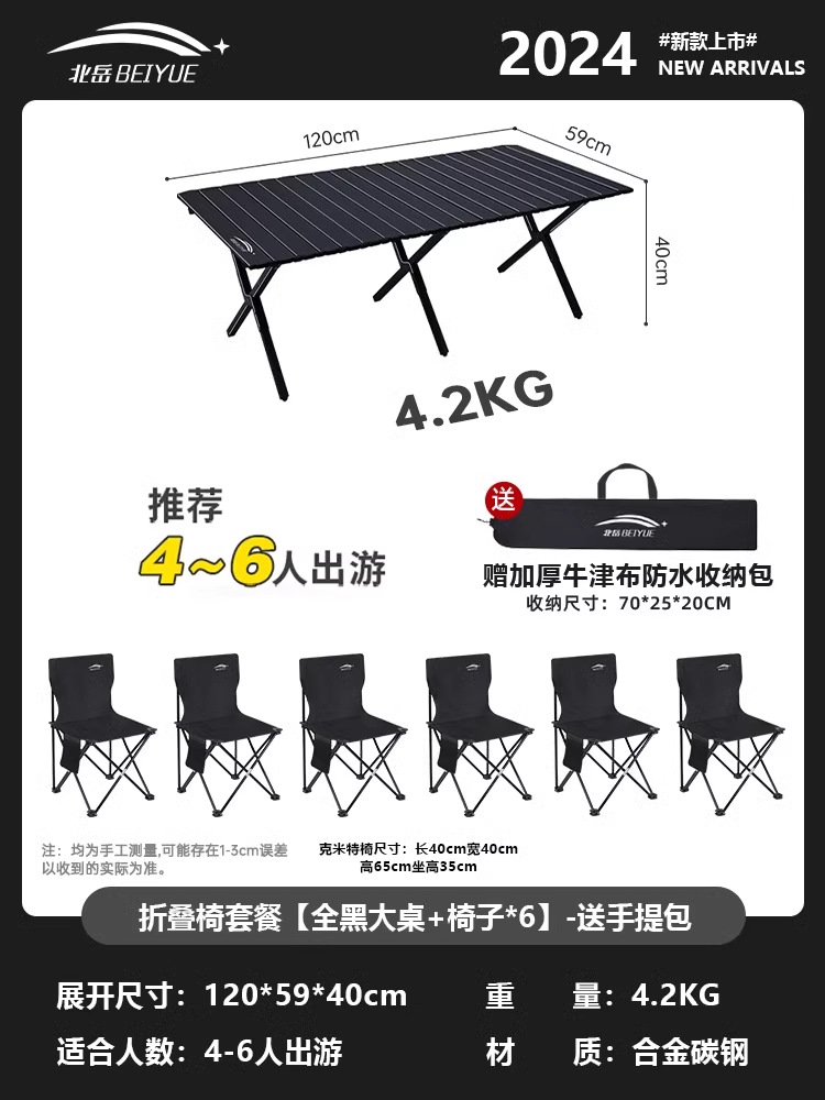 • 접이식 테이블과 의자 패키지 [블랙 대형 테이블 + 의자*6] - 무료 핸드백.