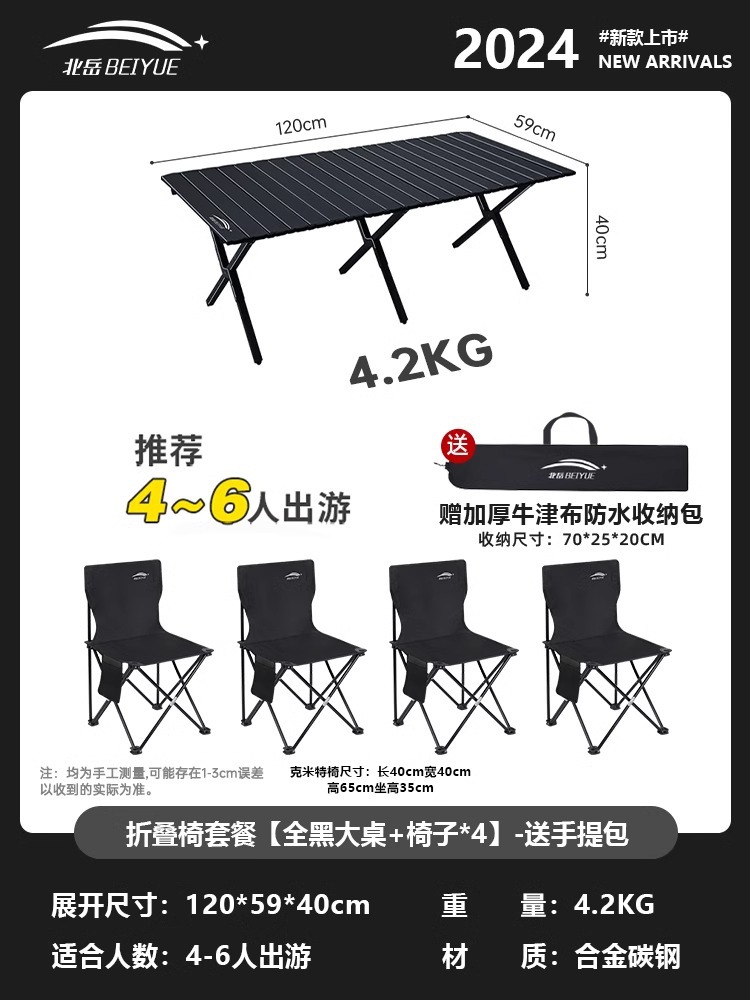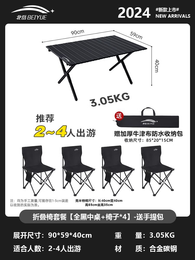 • 접이식 테이블과 의자 패키지 [블랙 대형 테이블 + 의자*4] - 무료 핸드백