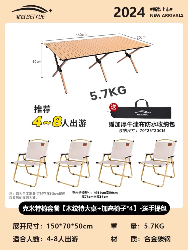 • 접이식 테이블과 의자 패키지 [나뭇결 대형 테이블 + 의자*4] - 무료 핸드백