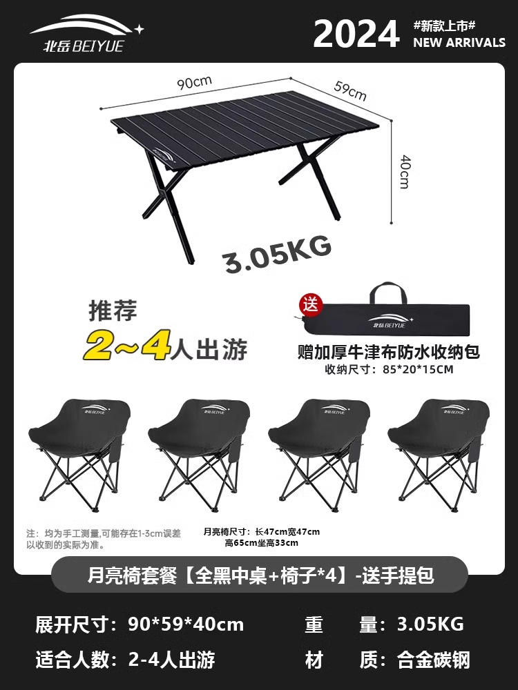 • 접이식 테이블과 의자 패키지 [블랙 미디엄 테이블 + 의자*4] - 무료 핸드백