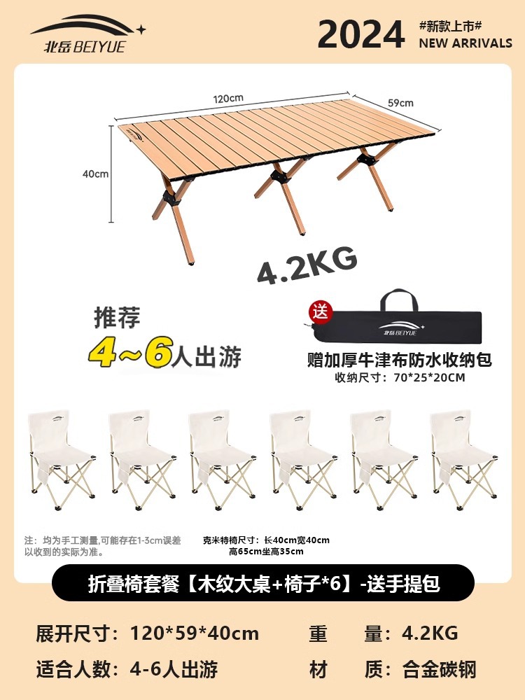 • 접이식 테이블과 의자 패키지 [대형 나뭇결 테이블 + 의자*6] - 무료 핸드백
