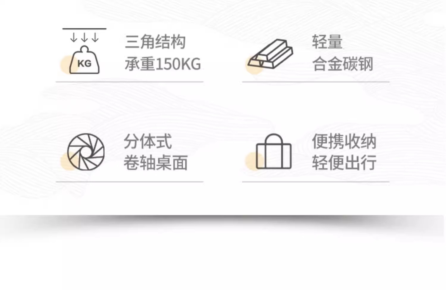 • [2.0 두꺼운 두꺼운 탄소강] 대형 120cm 나뭇결 계란말이 테이블 (핸드백 포함)