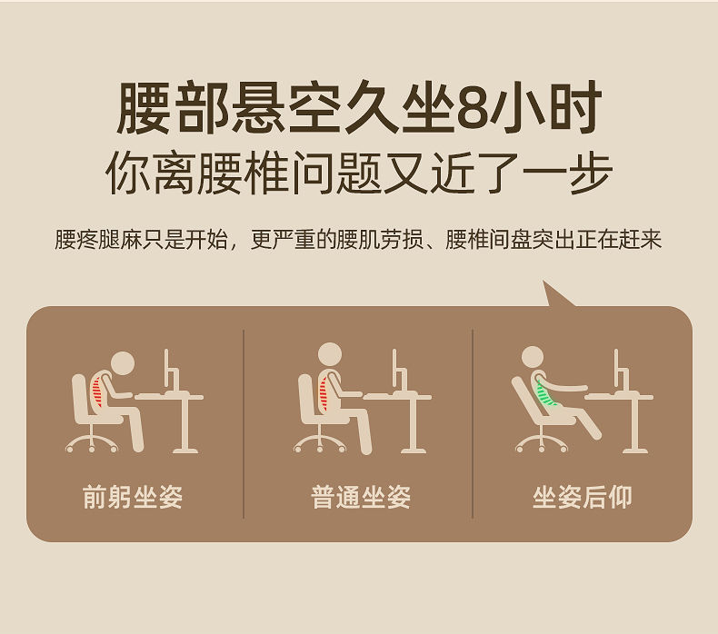 • 인체공학적 지지대와 허리 보호대, 장시간 앉아있어도 피곤하지 않음 [베이지]