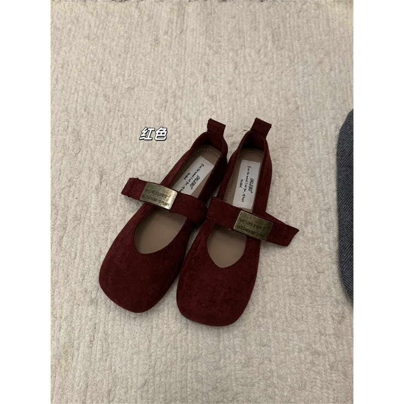 빈티지 이브닝 스웨이드 메리 제인 신발 2025 새로운 틈새 얕은 입 우유 신발 플랫 신발 틈새 완두콩 신발스토어 가기