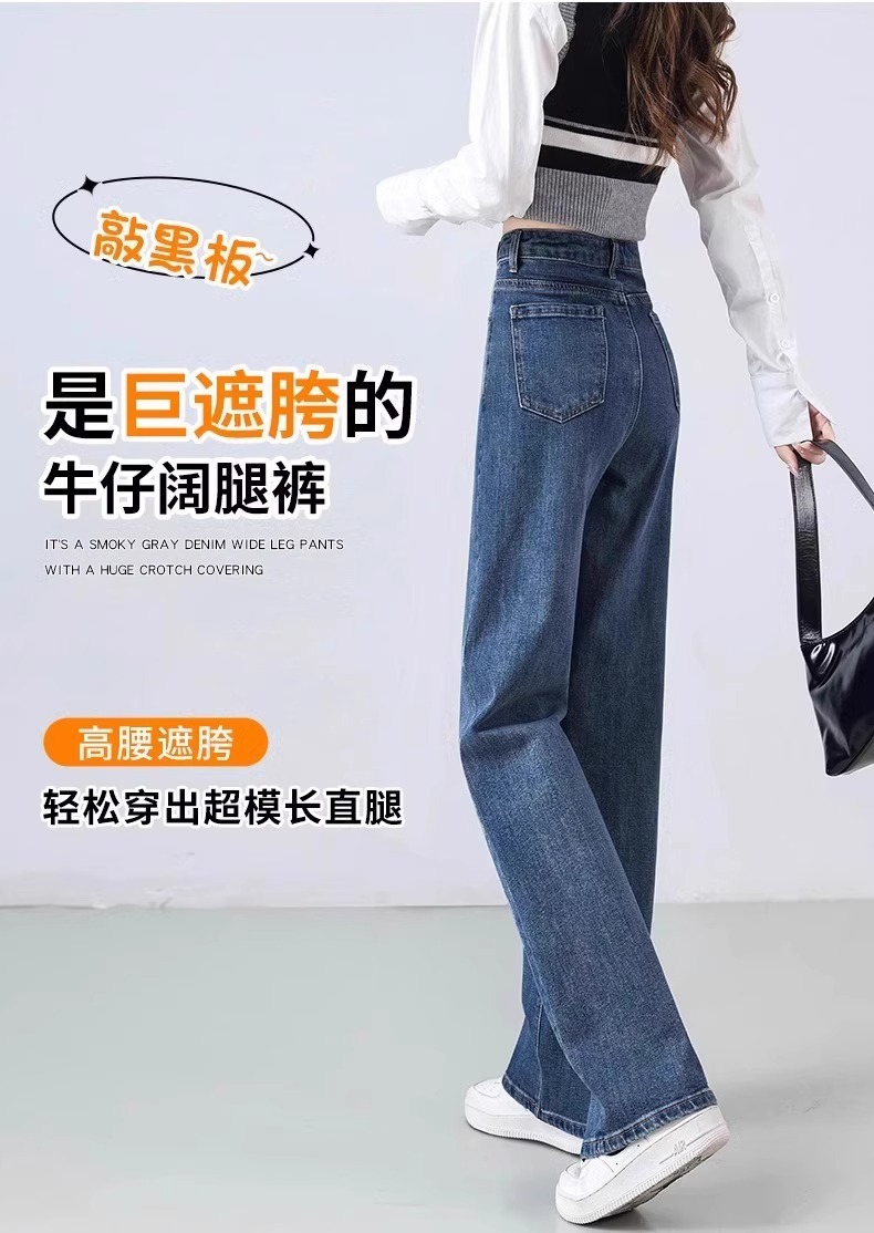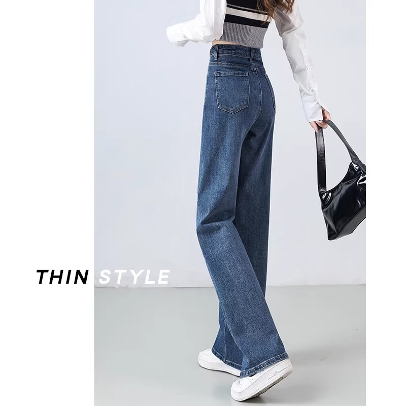 좁은 직선 다리 바지 여성 봄과 가을 2025 새로운 인기 높은 허리 슬리밍 작은 느슨한 파란색 넓은 다리 청바지스토어 가기