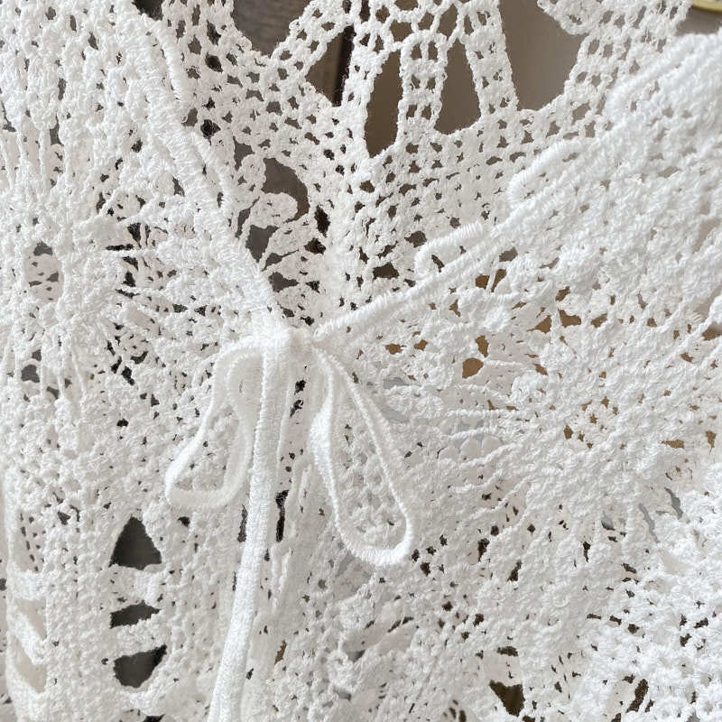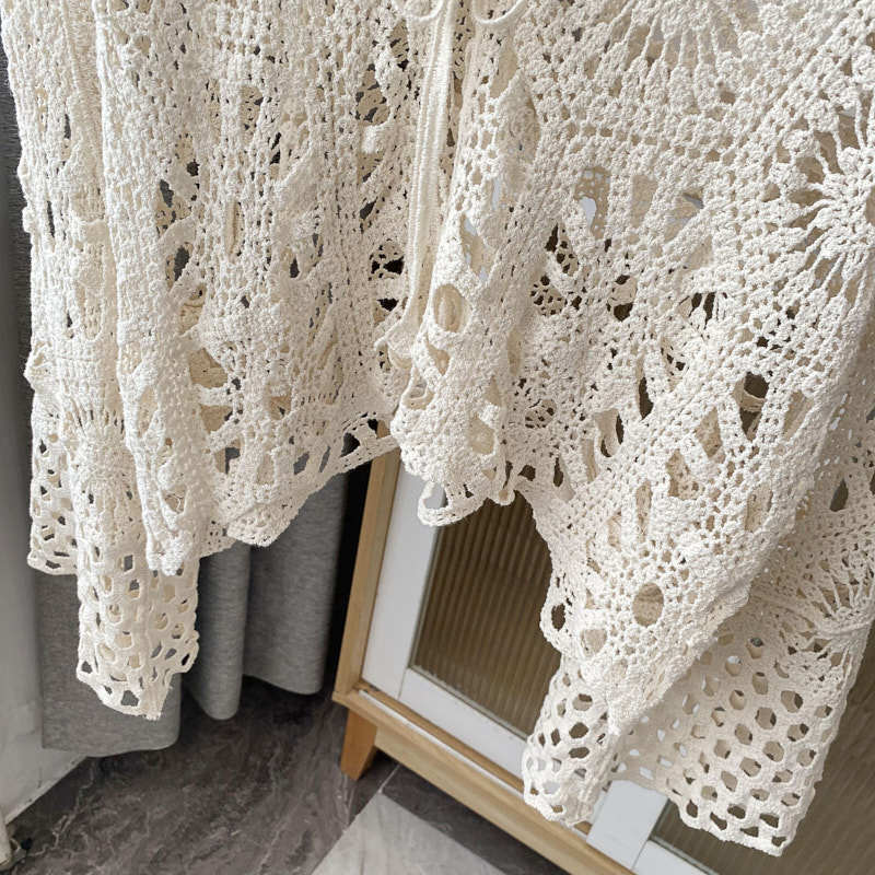진짜 샷 할로우 니트 블라우스 여름 의상 보헤미안 해변 휴가 여성을위한 긴팔 탑 선 스크린 셔츠