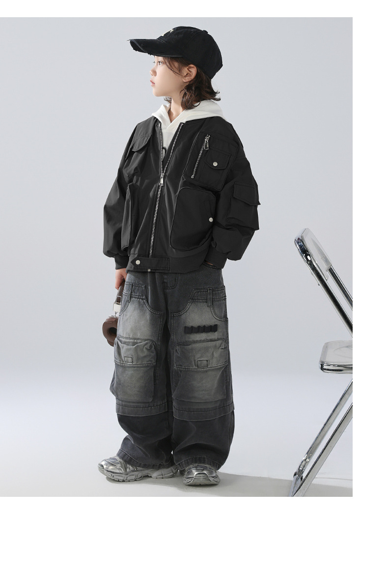 남자들의 잘 생긴 작업복 봄 2025 년 새 어린이 폭행 옷 봄과 가을 서양식 소년 재킷 튀긴 거리스토어 가기