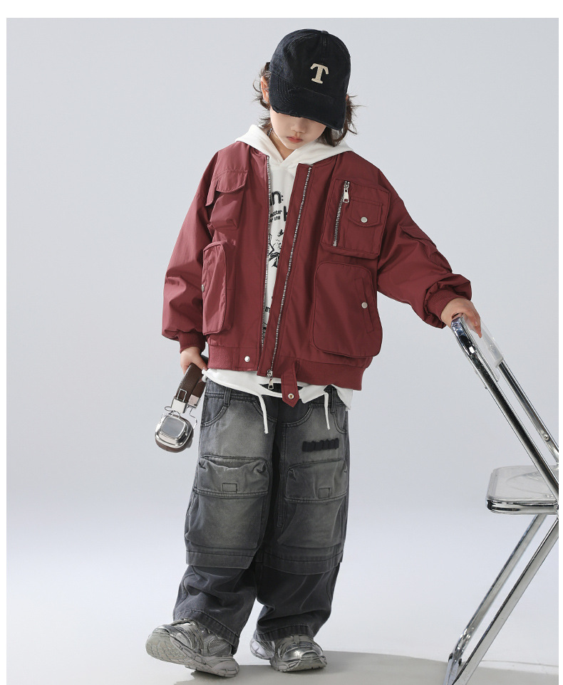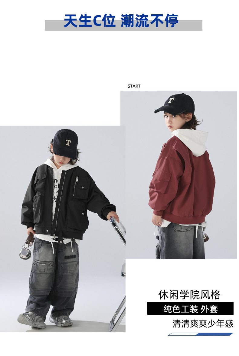 남자들의 잘 생긴 작업복 봄 2025 년 새 어린이 폭행 옷 봄과 가을 서양식 소년 재킷 튀긴 거리