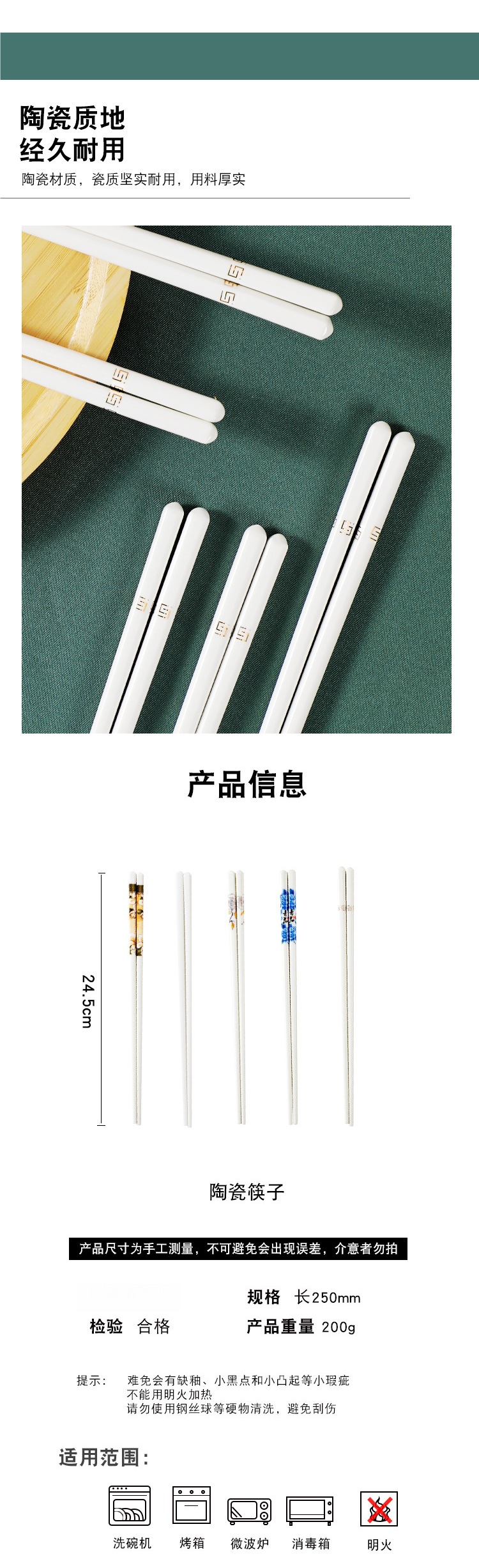 • 순백색 세라믹 젓가락 10쌍