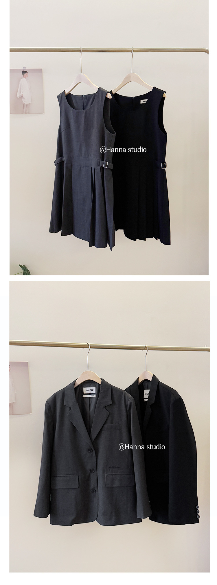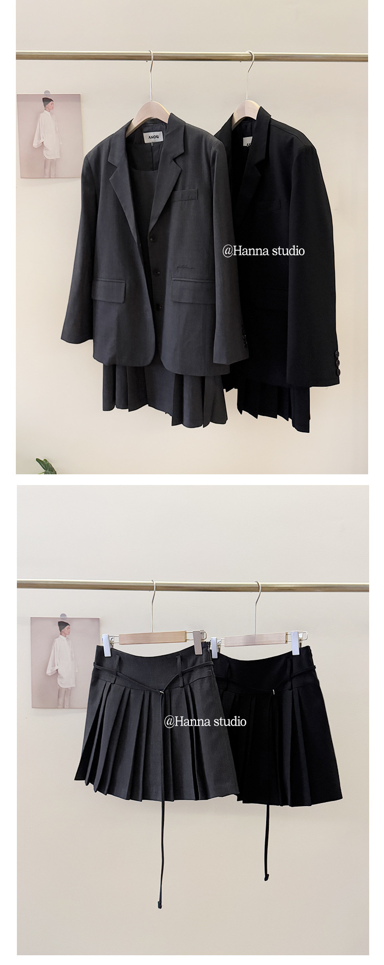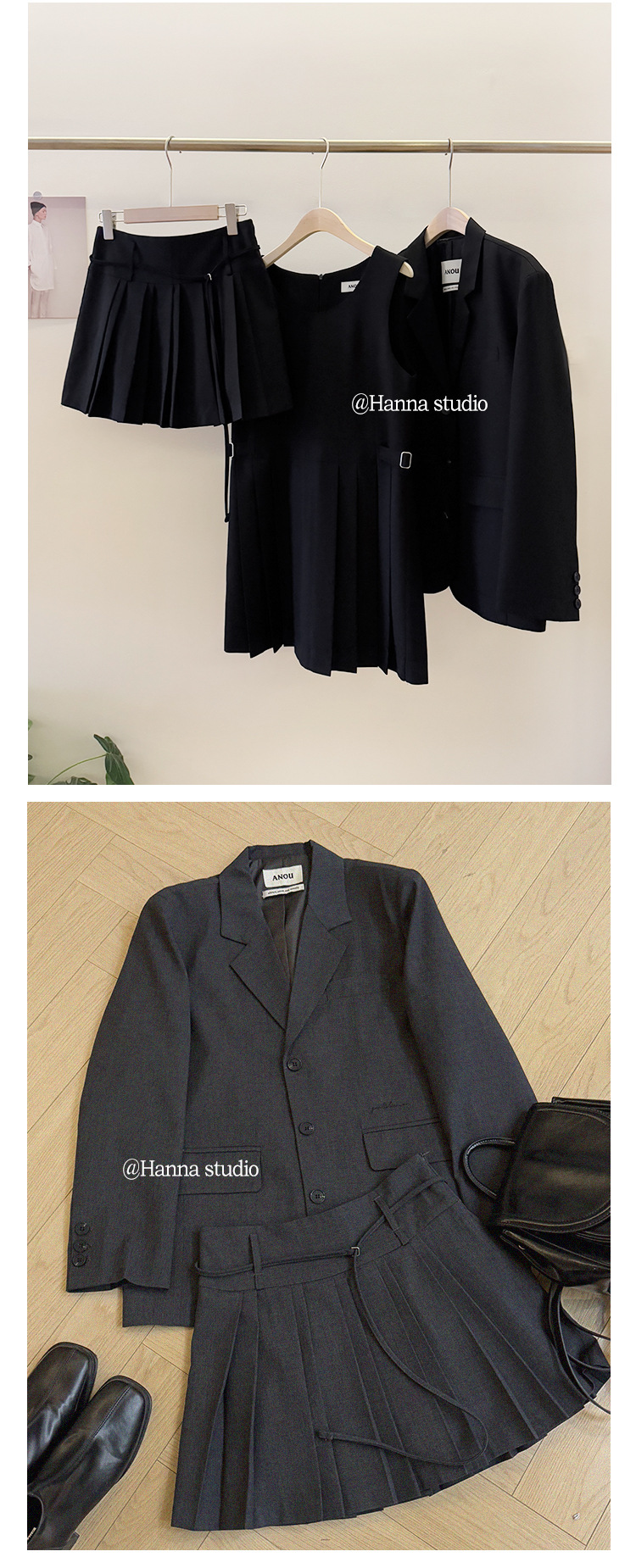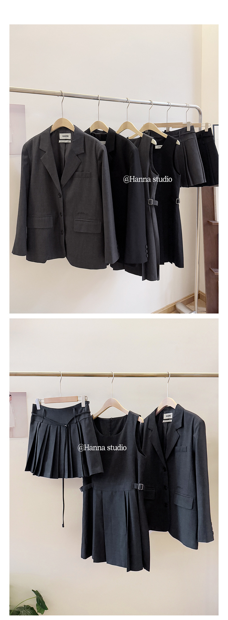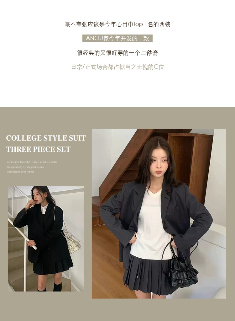 한국 수출용 고품질 2026 동대문 스타일 AN*U 자수 정장 조끼 스커트 팬츠 세트스토어 가기