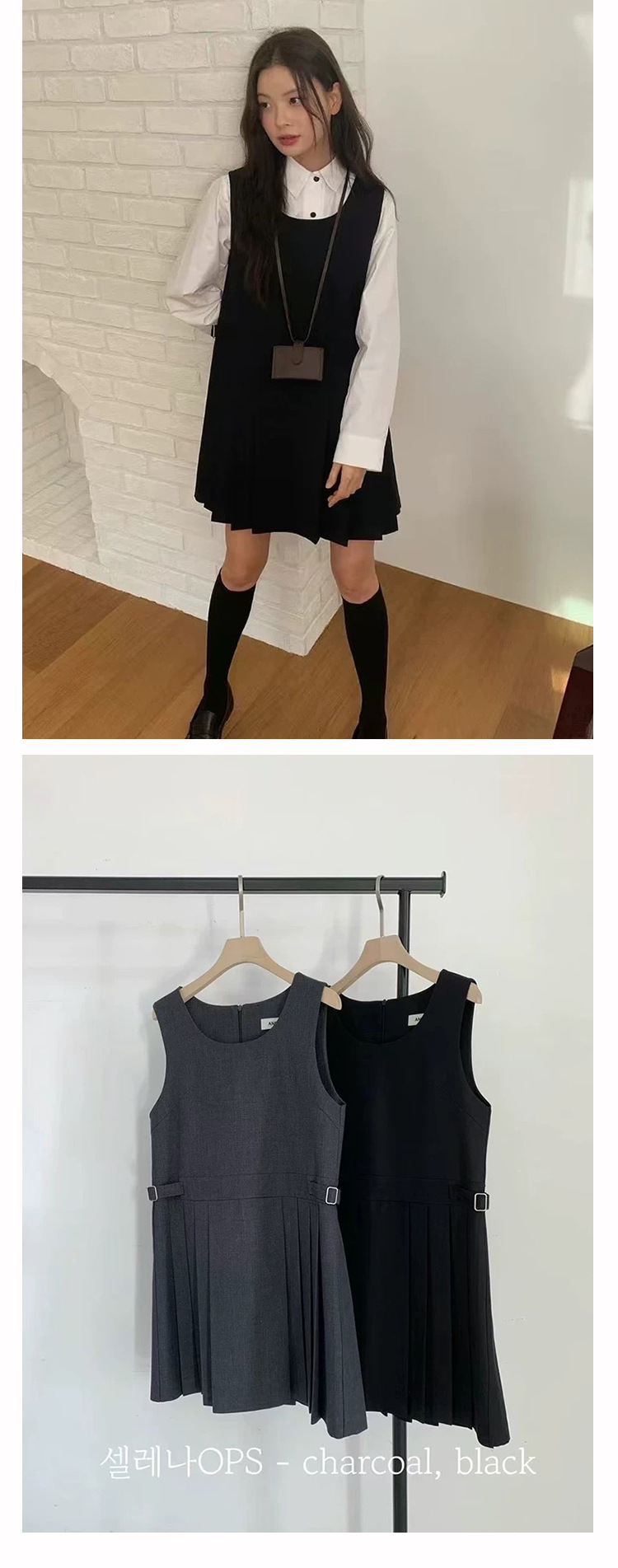 • 서스펜더 스커트 블랙 프리 사이즈