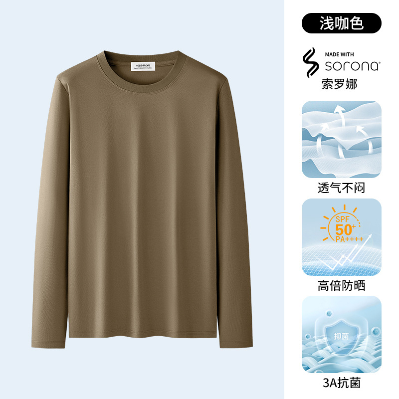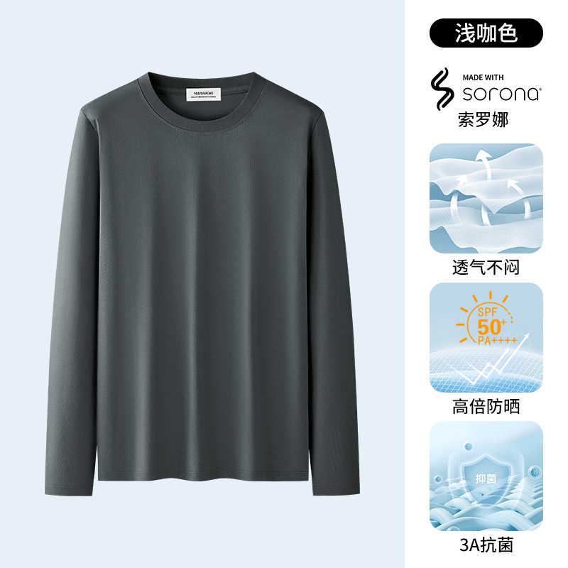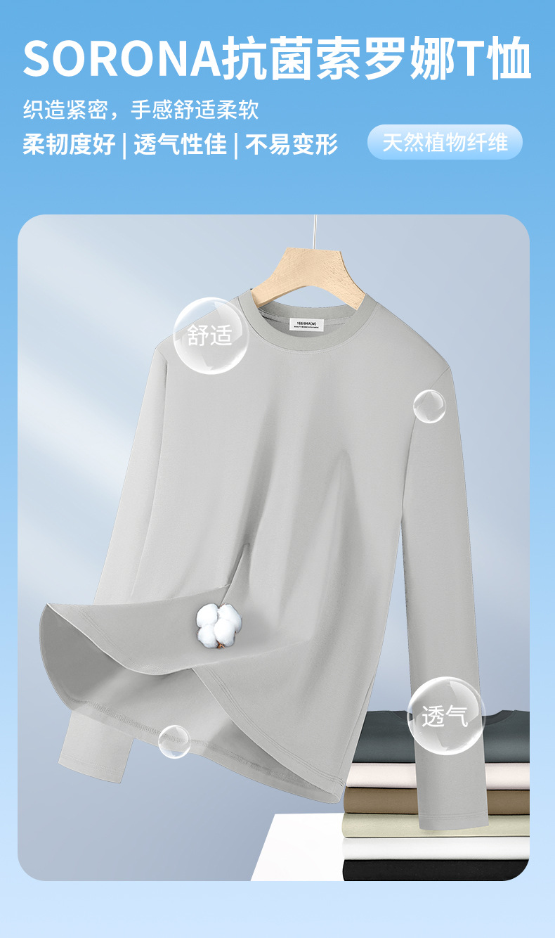 260G 솔로나 긴팔 티셔츠 남성용 고급 캐주얼 라운드넥 고급감 있는 이너웨어 봄 가을용 청년용스토어 가기