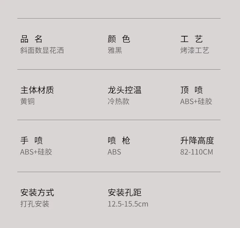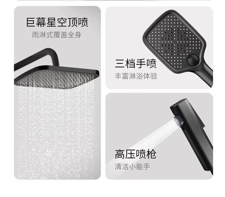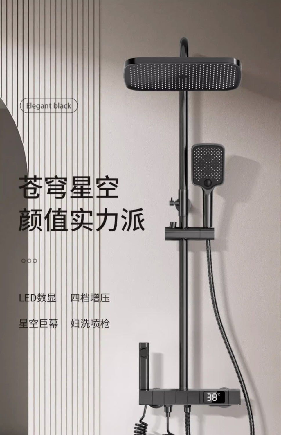 모든 구리 가정용 디지털 디스플레이 욕실 샤워 헤드 일정한 온도 샤워 세트 Rorty Square 가압 샤워