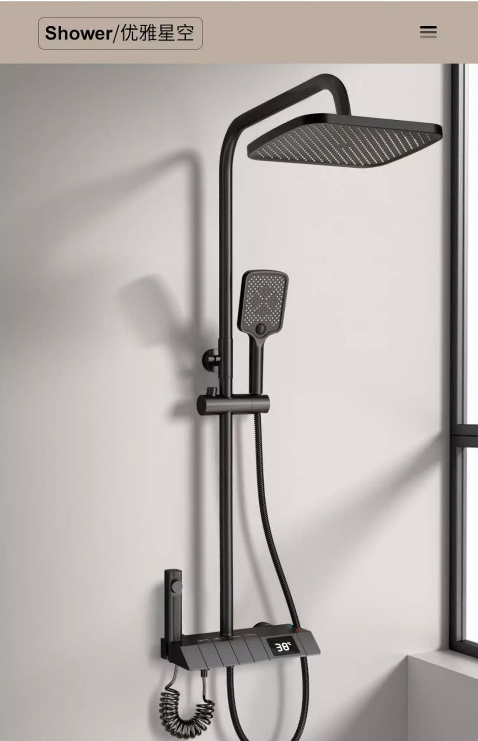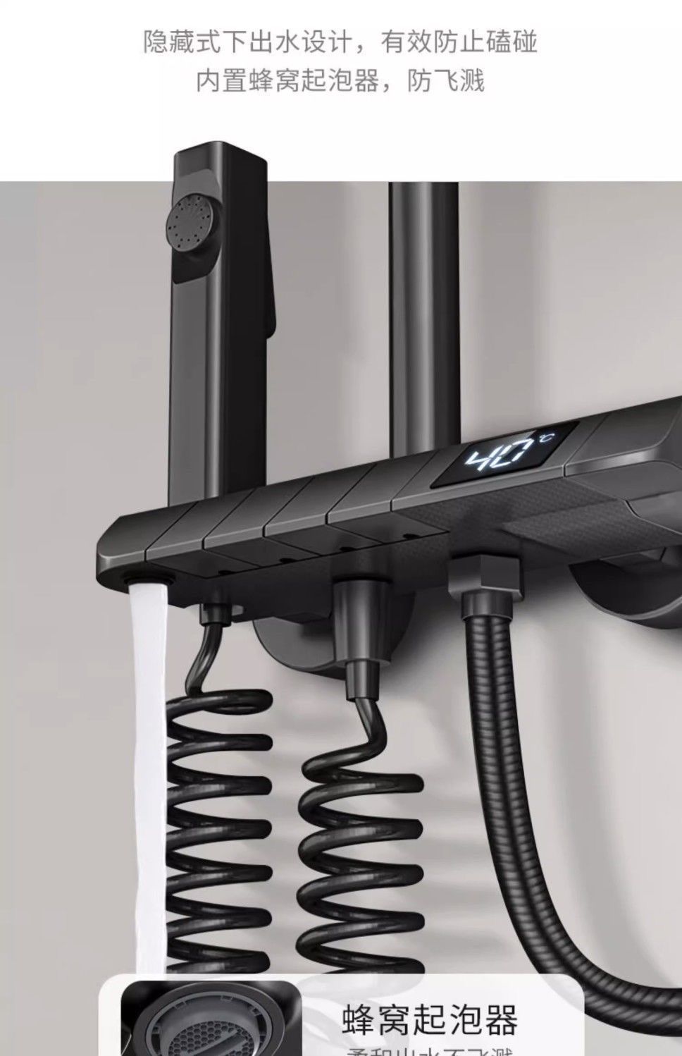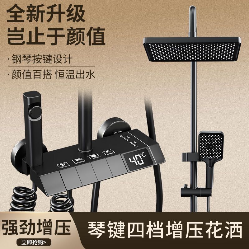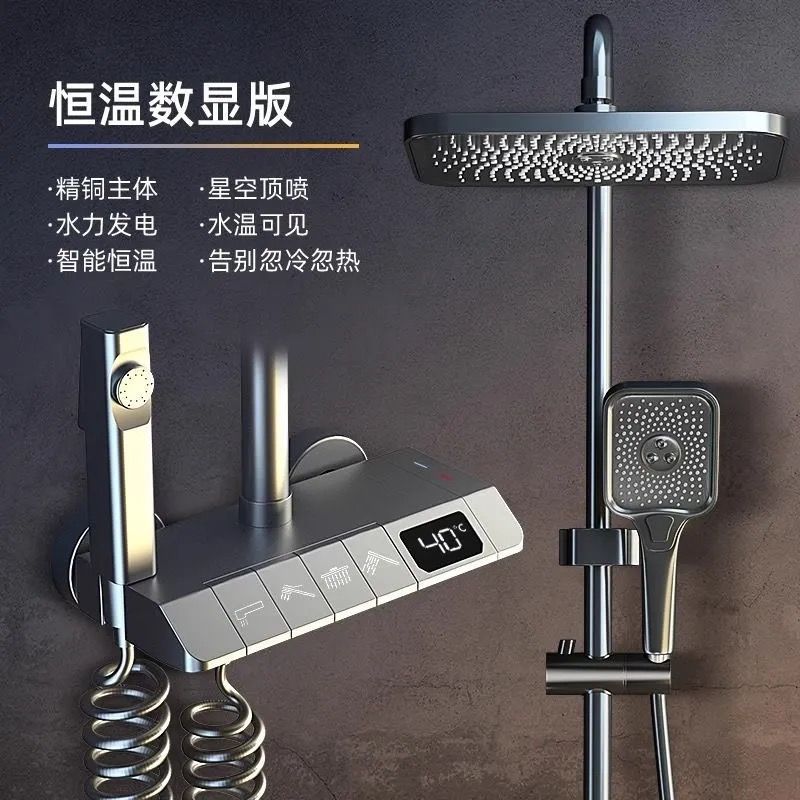 모든 구리 가정용 디지털 디스플레이 욕실 샤워 헤드 일정한 온도 샤워 세트 Rorty Square 가압 샤워스토어 가기