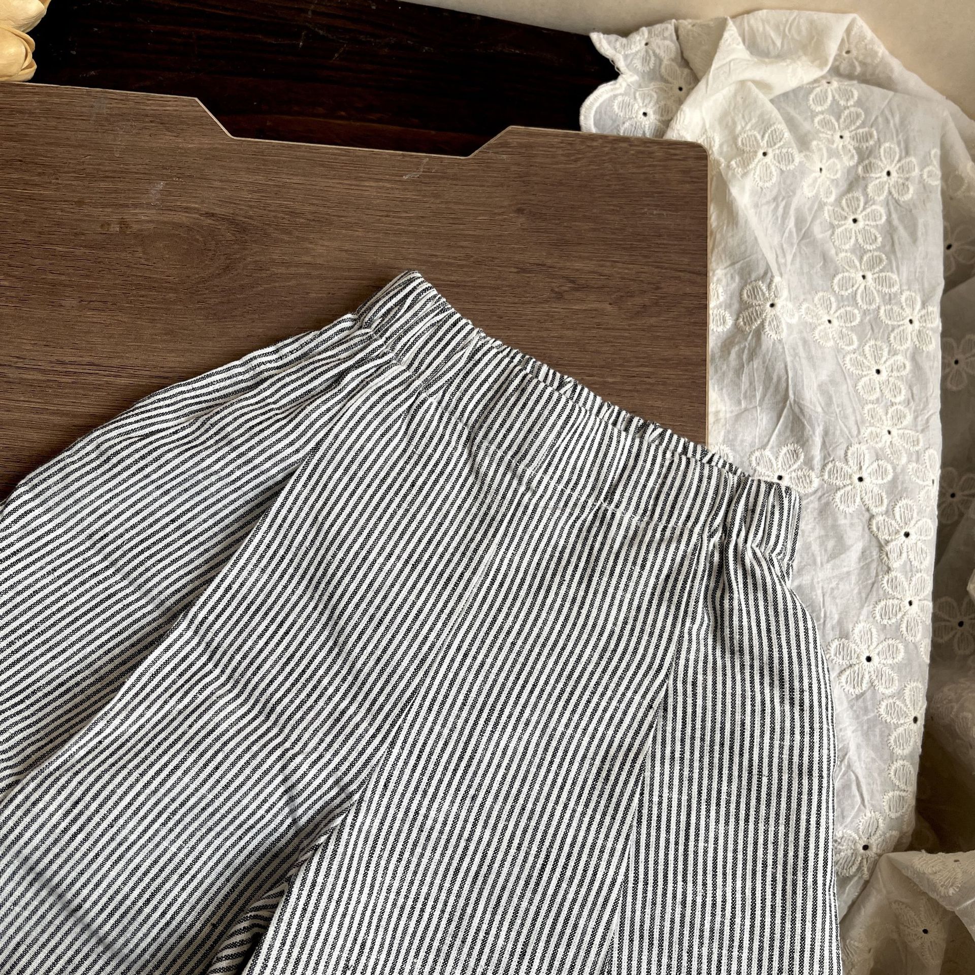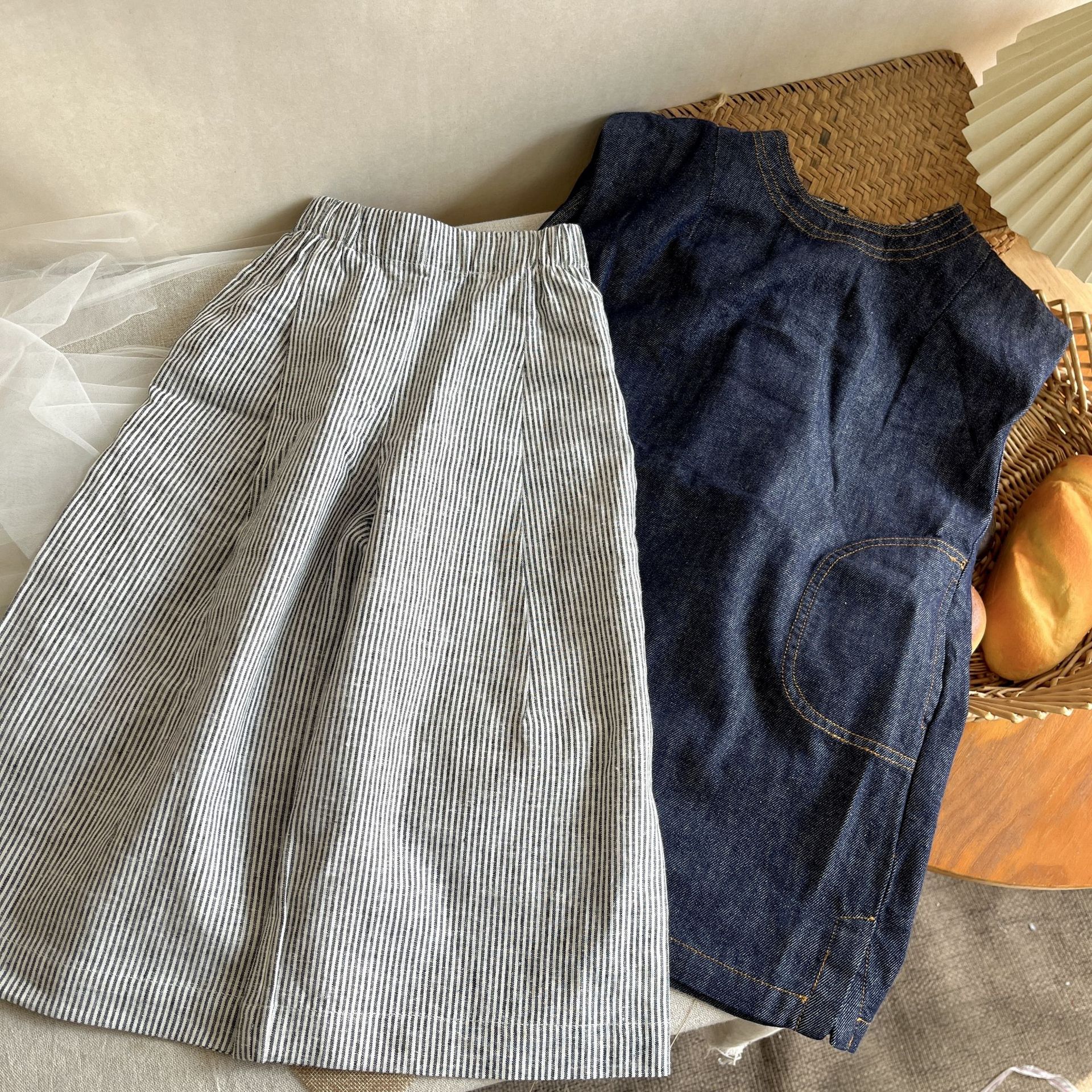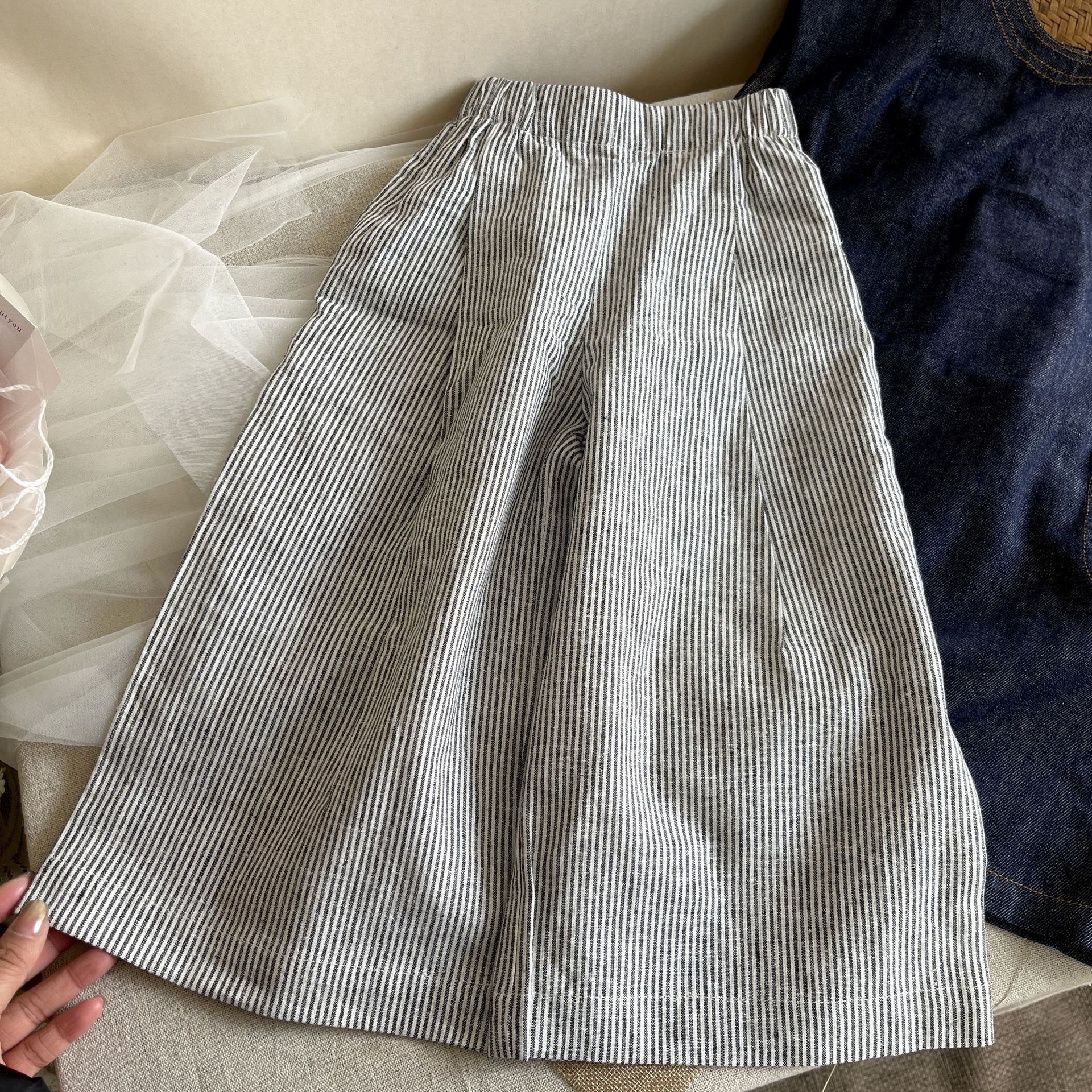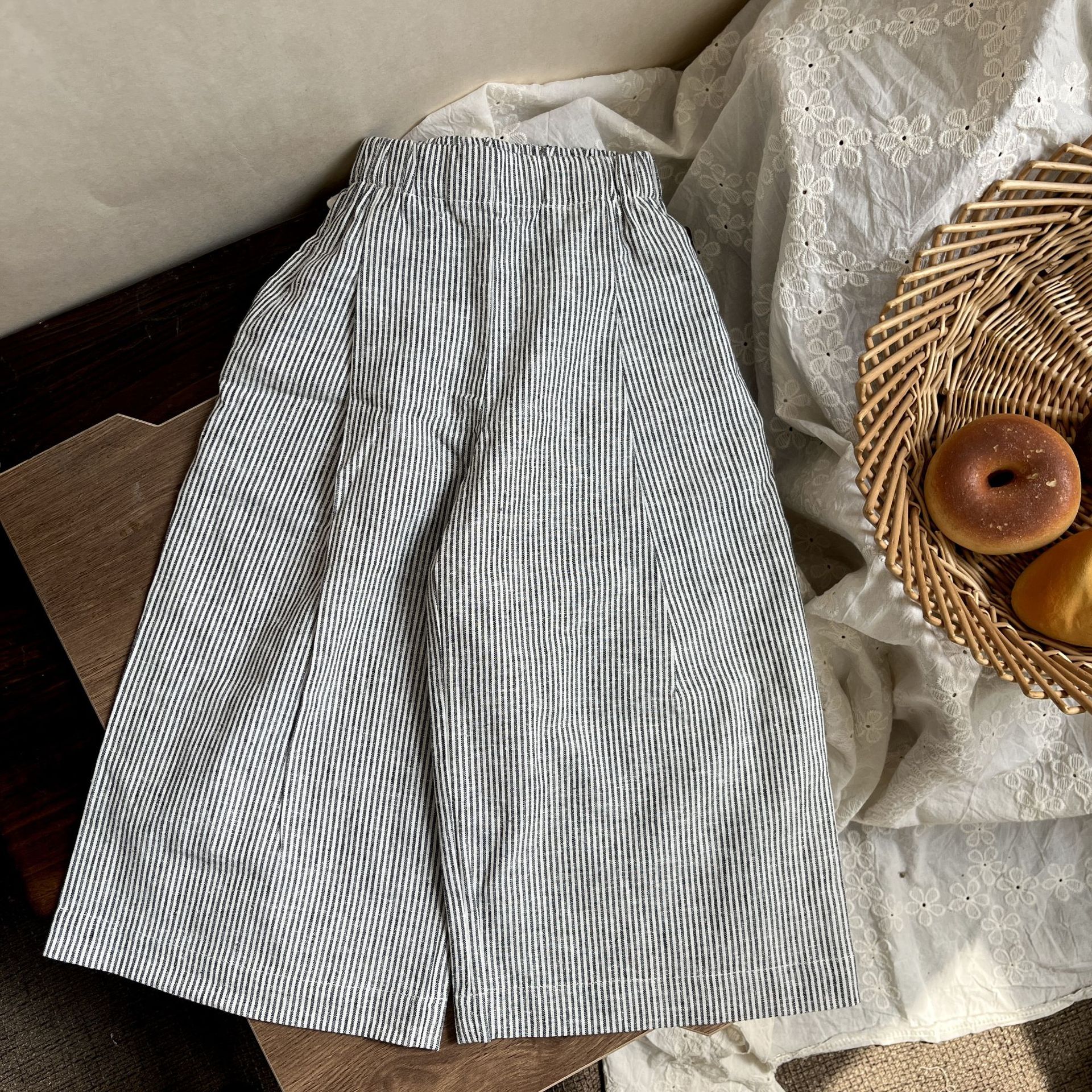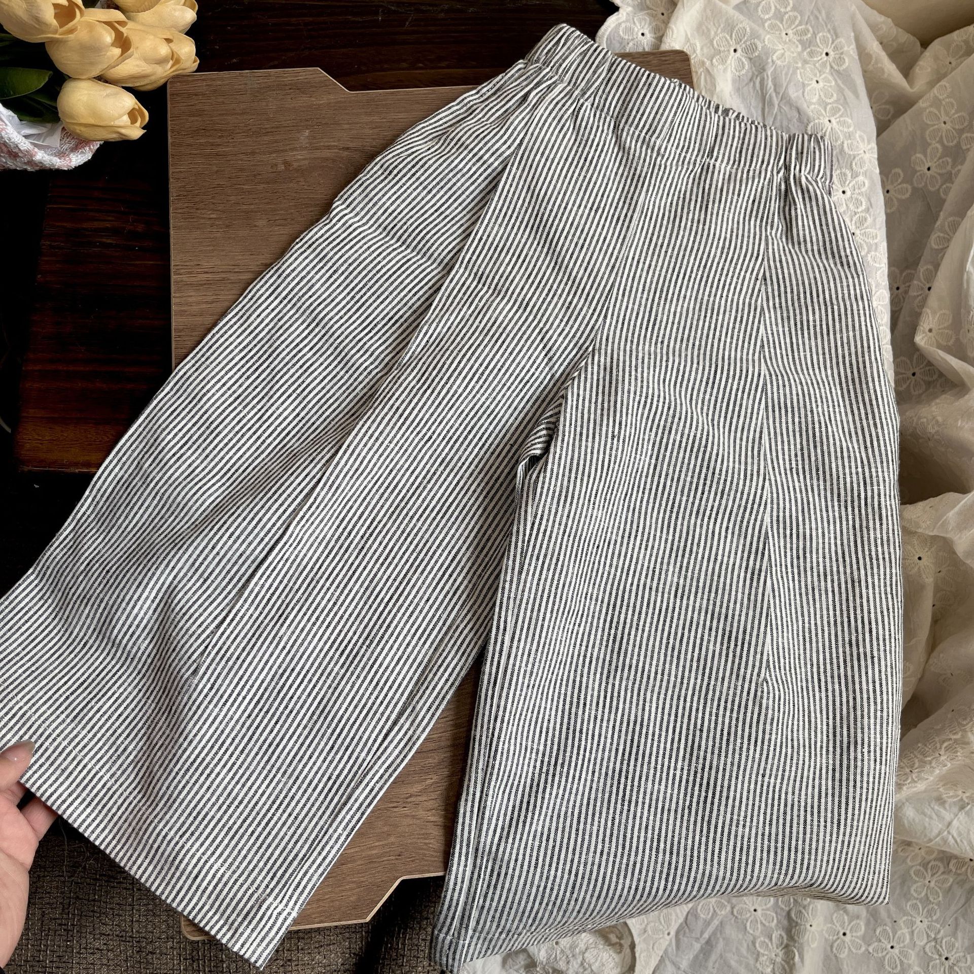2025 봄과 여름 어린이 신형 서양식 올매치 스트라이프 와이드 레그 팬츠 아기의 싱글웨어 스택 형 안티 모기 트렌디 팬츠스토어 가기