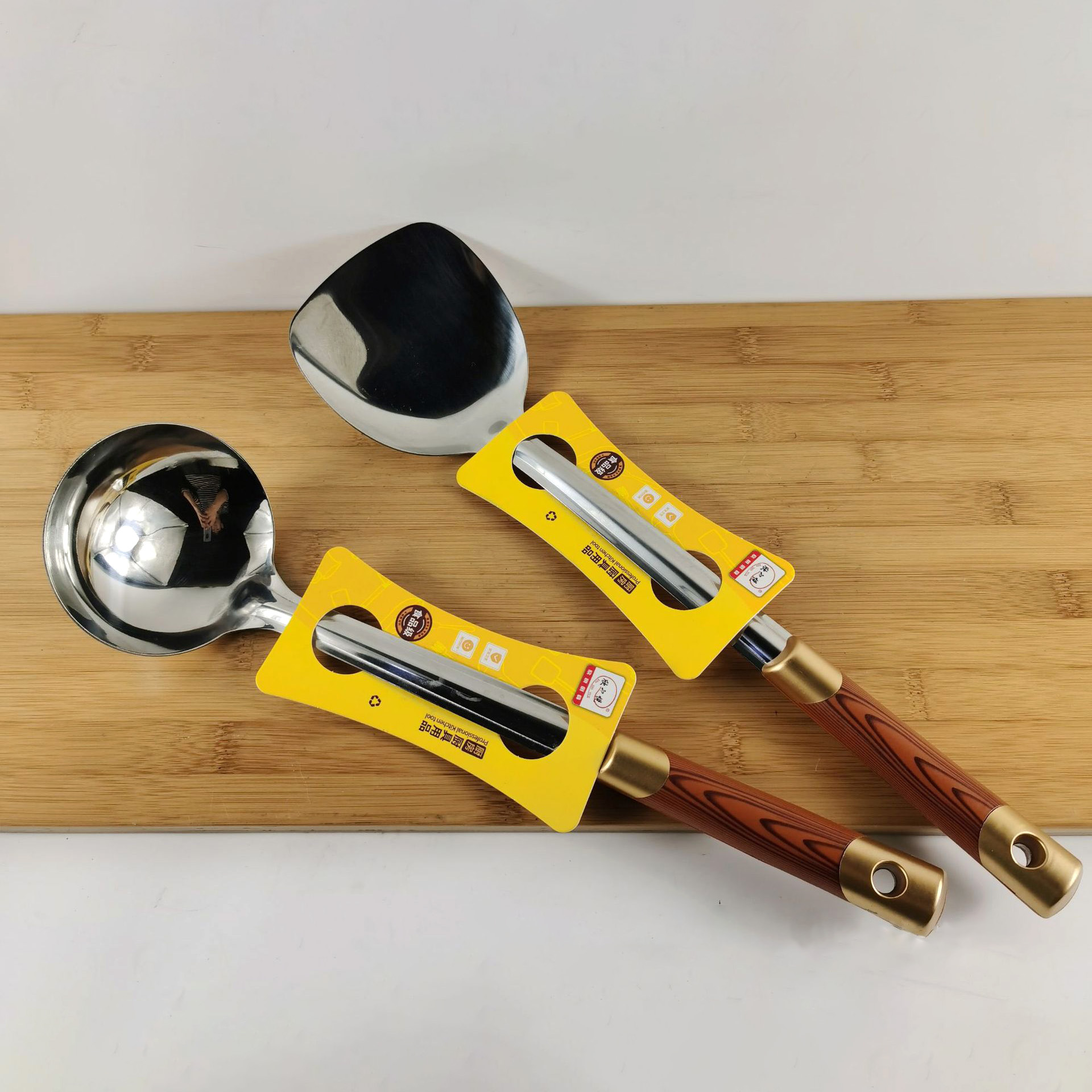 가정용 요리 주방 용품 두꺼운 스테인레스 스틸 주걱 식품 등급 스푼 주걱 볶음 나무 곡물 긴 손잡이 수프 도매스토어 가기
