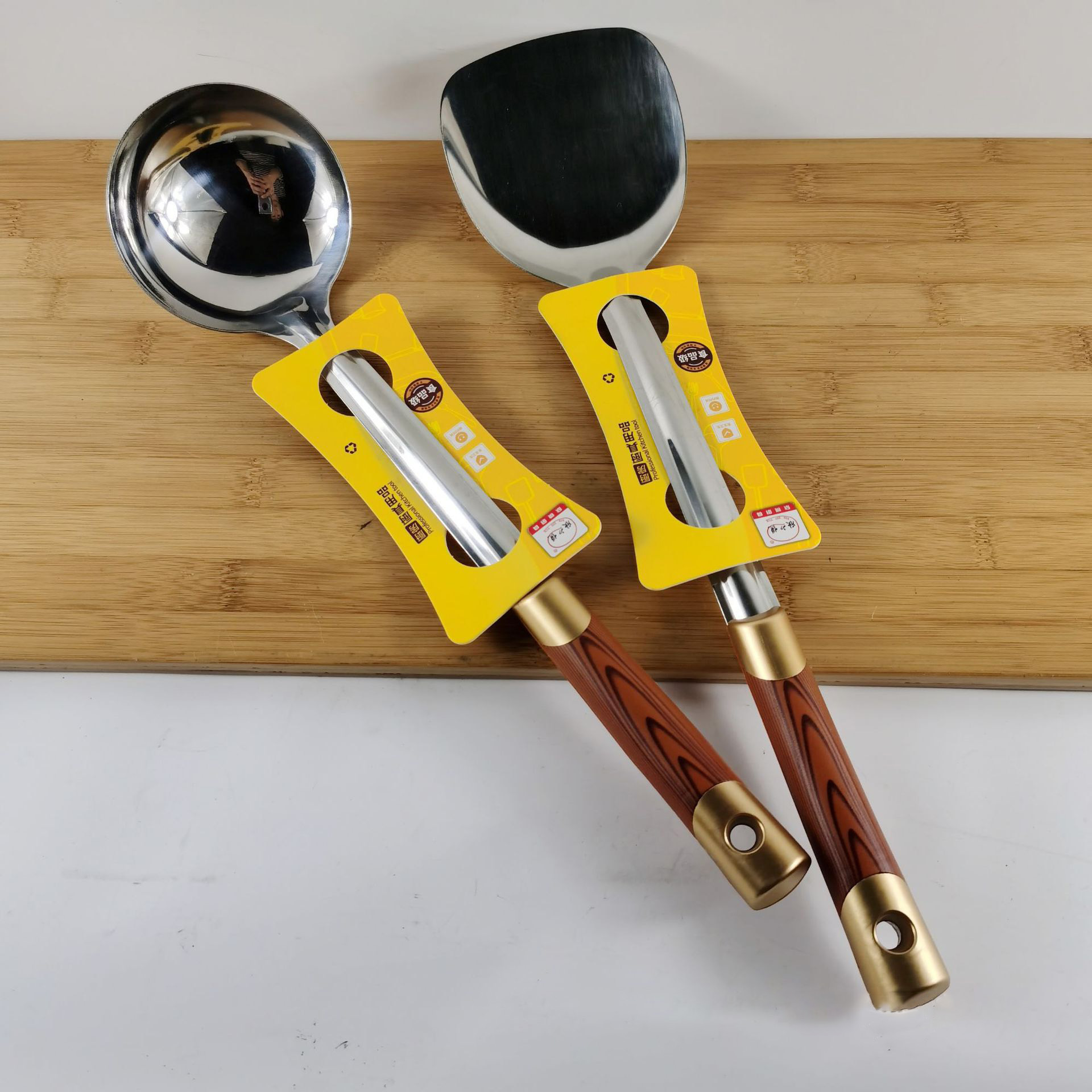 가정용 요리 주방 용품 두꺼운 스테인레스 스틸 주걱 식품 등급 스푼 주걱 볶음 나무 곡물 긴 손잡이 수프 도매
