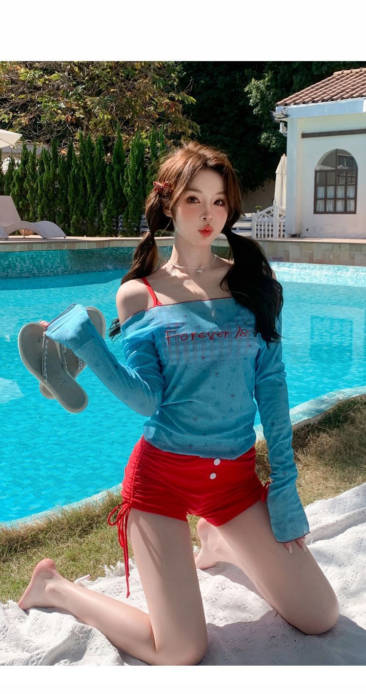 새로운 수영복 도파민 분할 비키니 4 피스 세트 섹시한 순수 스타일 보수적 인 긴 소매 블라우스 수영복 여성스토어 가기