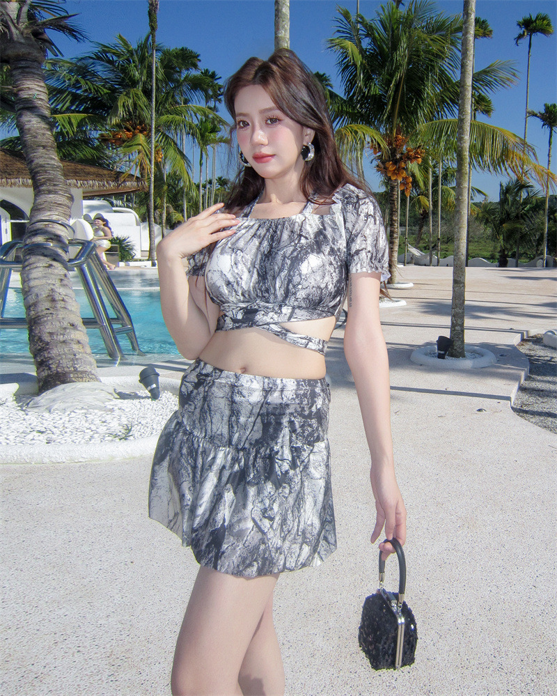 2025 새로운 폭발 수영 세트 여성 스플릿 스커트 스타일 보수적 슬림 배꼽 커버 여성 온천 순수 욕망 인터넷 인기 스타일