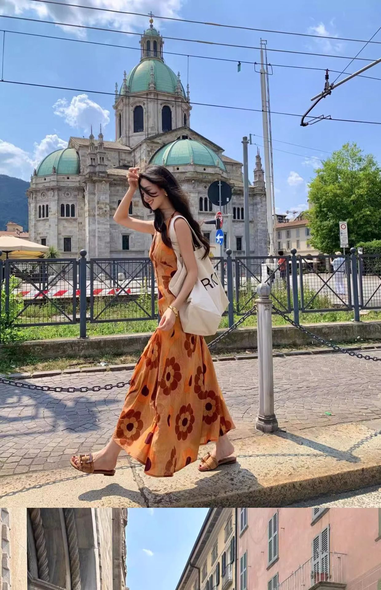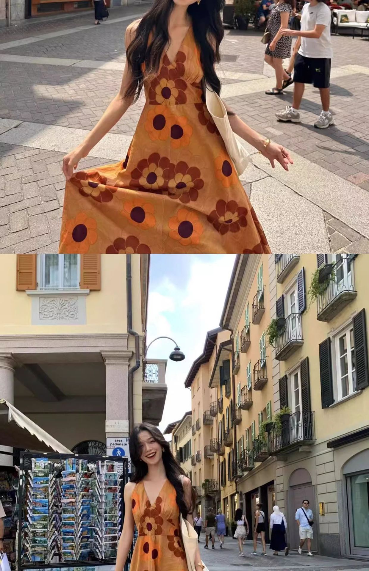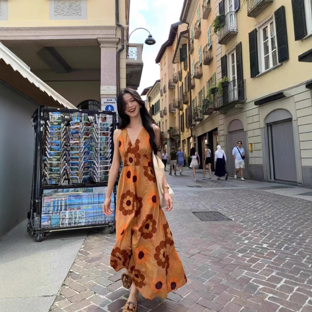 동남 아시아 국경 휴일 새로운 스타일 긴 원피스 풀오버 인쇄 우아한 통근 원피스 보헤미안 해변 원피스스토어 가기