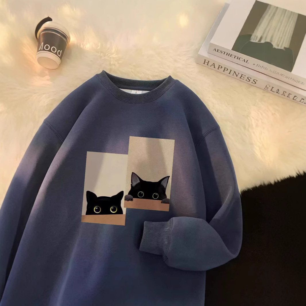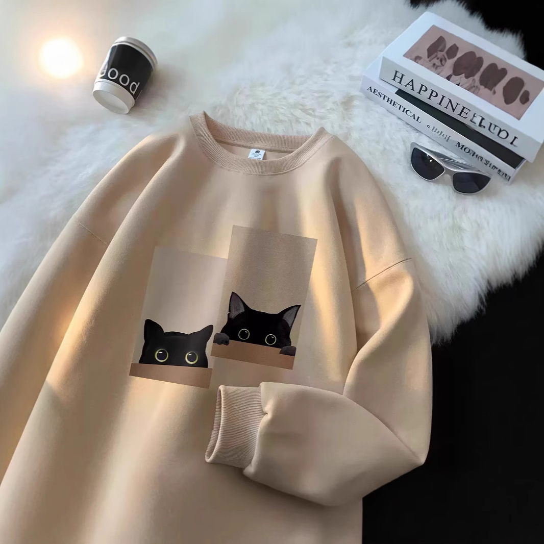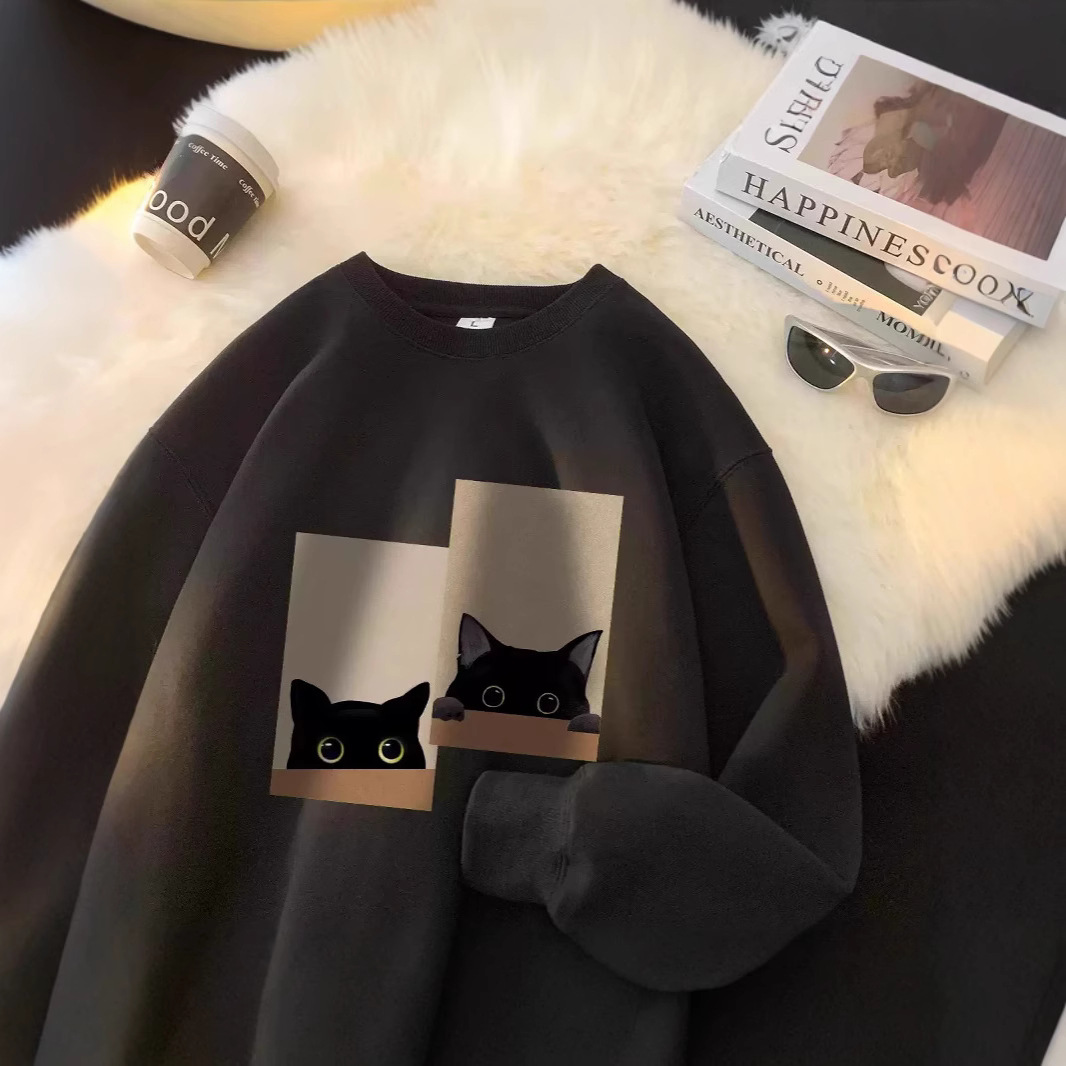 가을과 겨울 땀 남자 2024 새로운 느슨한 캐주얼 트렌디 브랜드 Ins 홍콩 스타일 인쇄 라운드 넥 긴팔 최고 유행 폭발스토어 가기