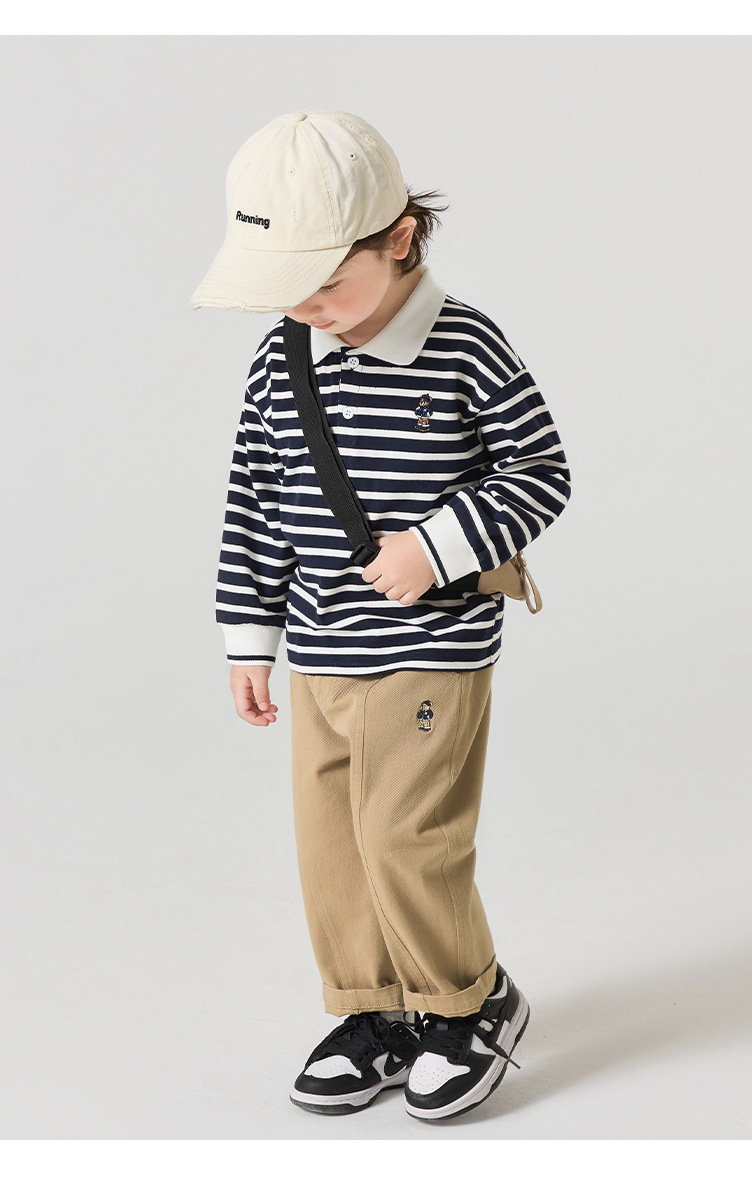오른쪽과 유럽 소년 줄무늬 긴팔 티셔츠 가을 의류 봄, 가을 아동 의류 아동용 베이비 바닥 셔츠 긴 바지 가을 트렌드스토어 가기