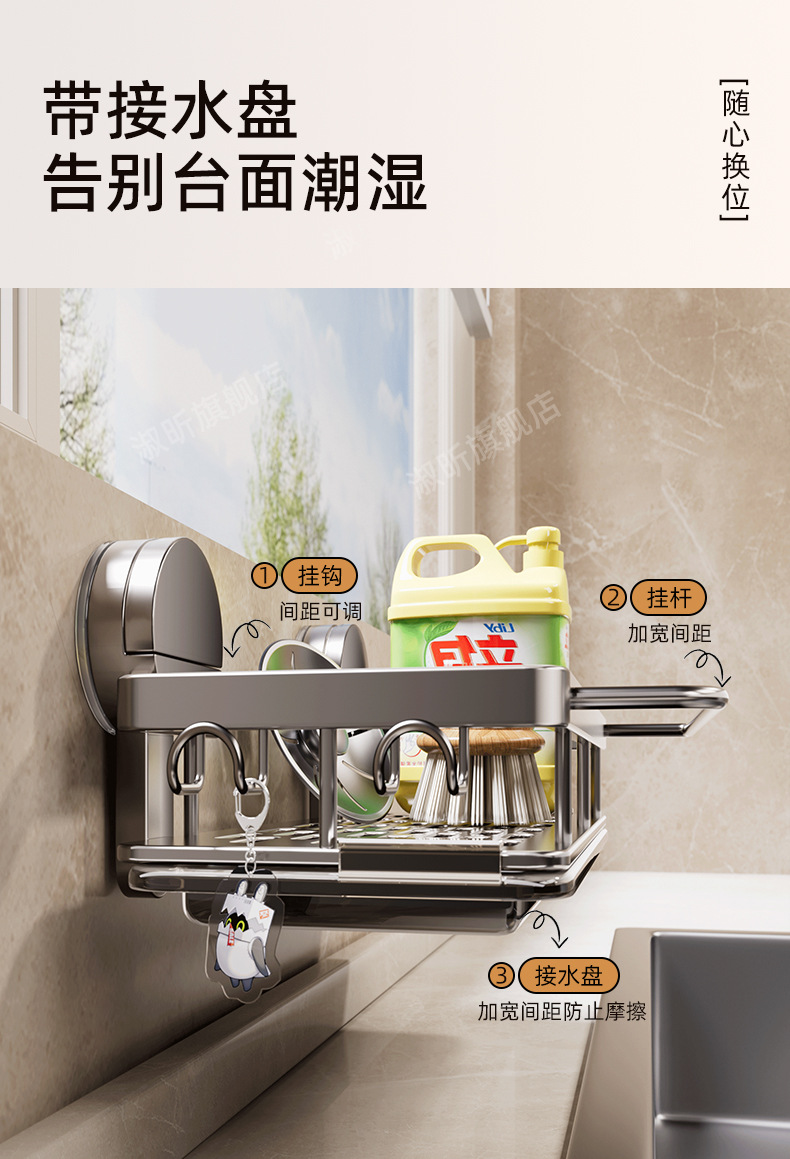 석션 컵 주방 보관 랙 랙 랙 스토리지 건조 랙 펀치 프리 벽 장착 조미료 선반 수도꼭지 싱크 유물스토어 가기
