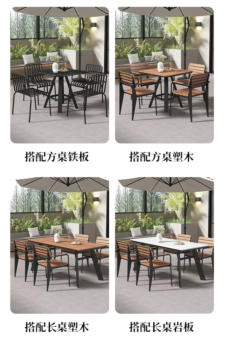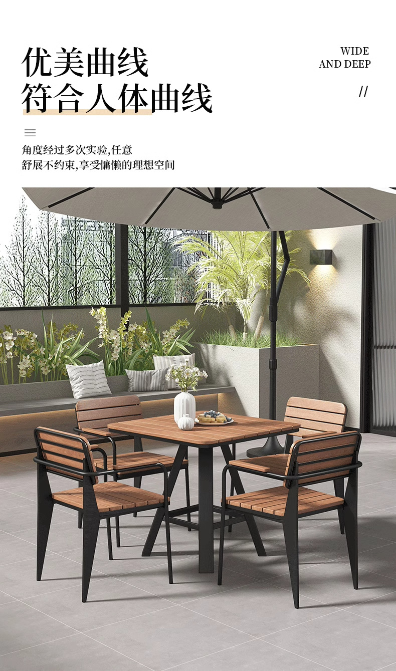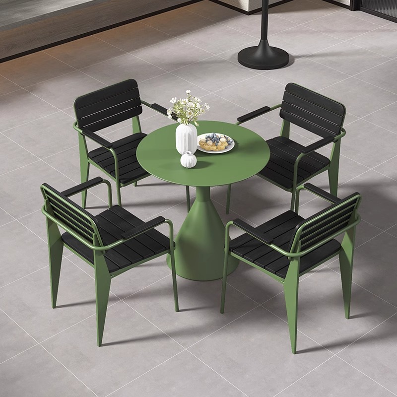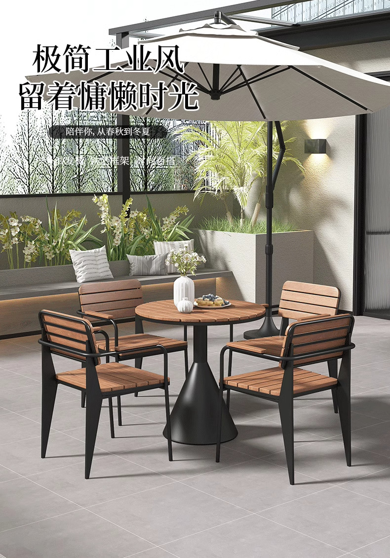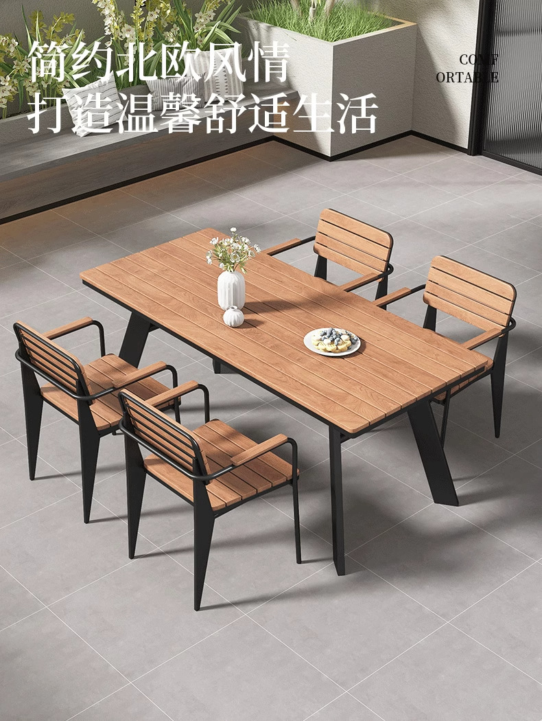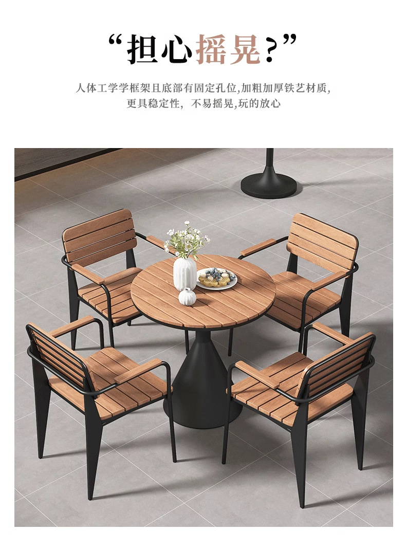 야외 테이블과 의자 우유 차 가게 안뜰 야외 정원 부식 방지 나무 테이블 및 의자 빌라 야외 발코니 레저 1 테이블과 4 개의 의자
