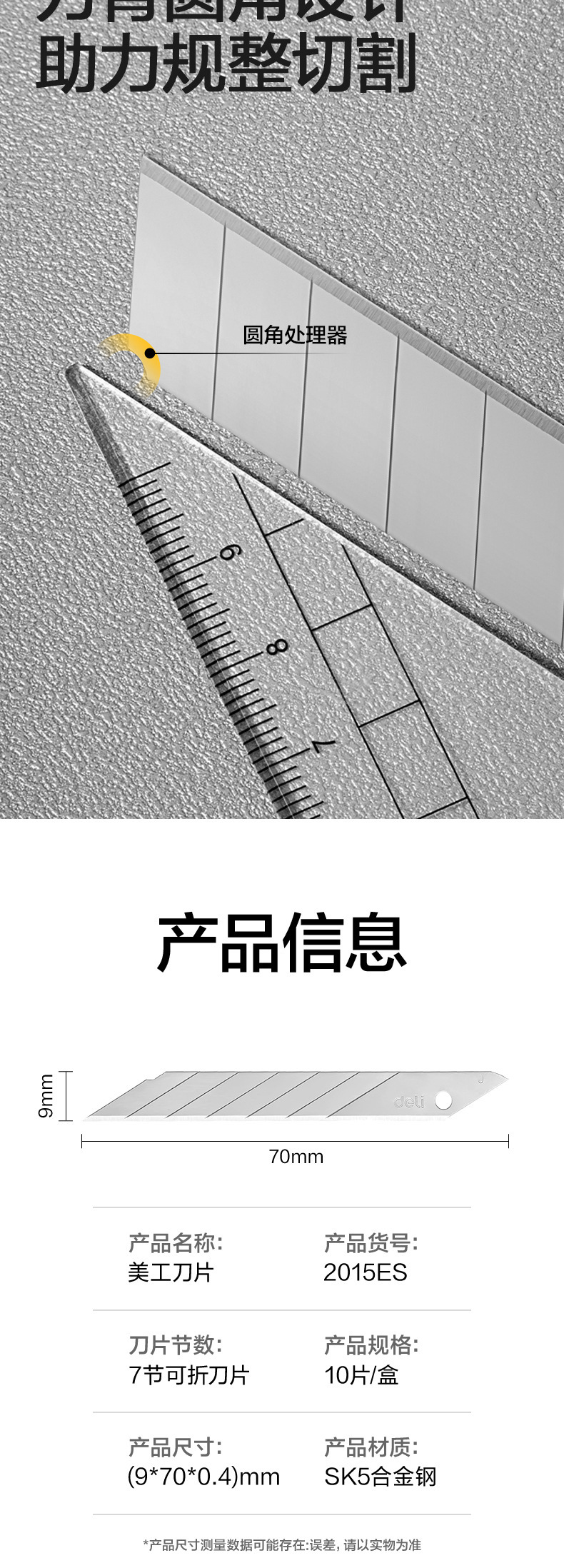 델리 2015ES 아트 블레이드 9mm30 ° SK5 합금 스틸 7 커터 블레이드 베벨 나이프 10 개 상자