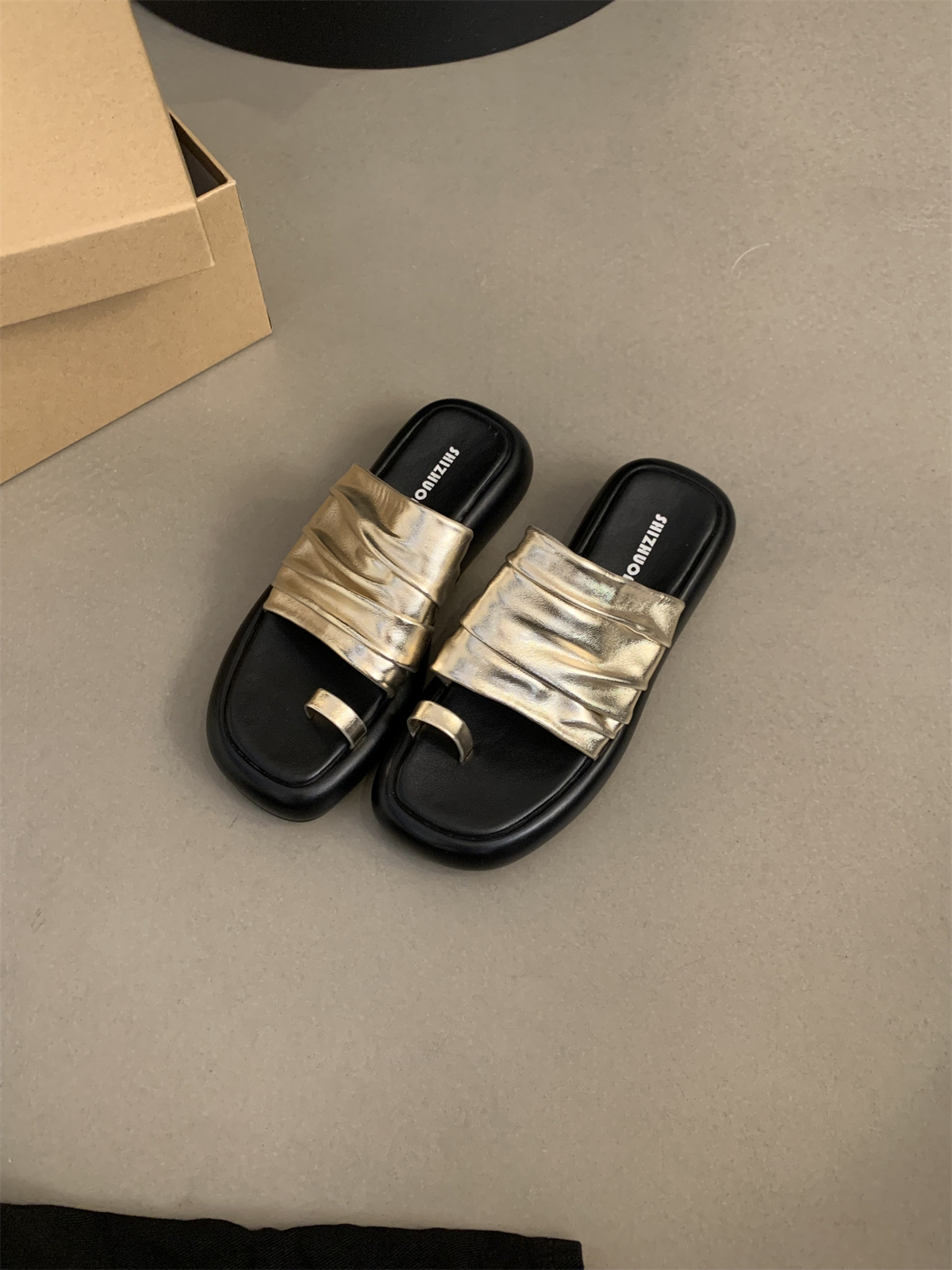 한국 플랫폼 슬리퍼 여성의 2025 여름 외부 착용 새로운 실버 샌들 유행 우아한 엘리베이터 비치 슈즈스토어 가기