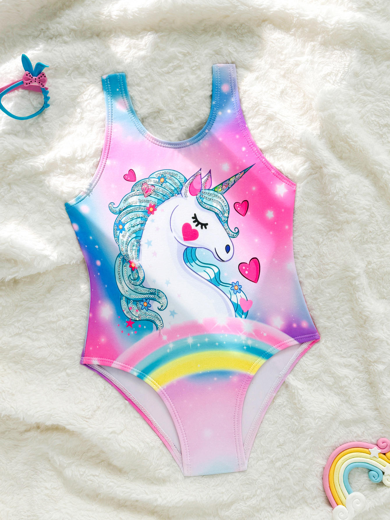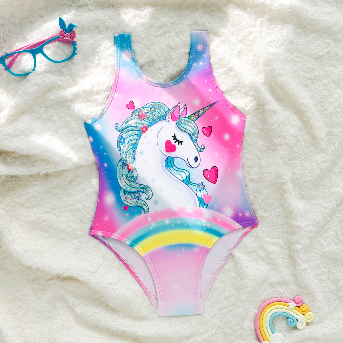 새 여아 원피스 수영복 레인보우 유니콘 귀여운 어린이 수영복 아기 소녀의 편안한 하이 바운스 수영복스토어 가기