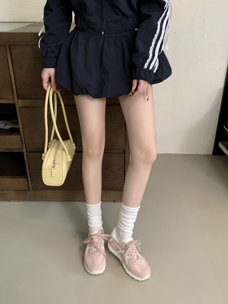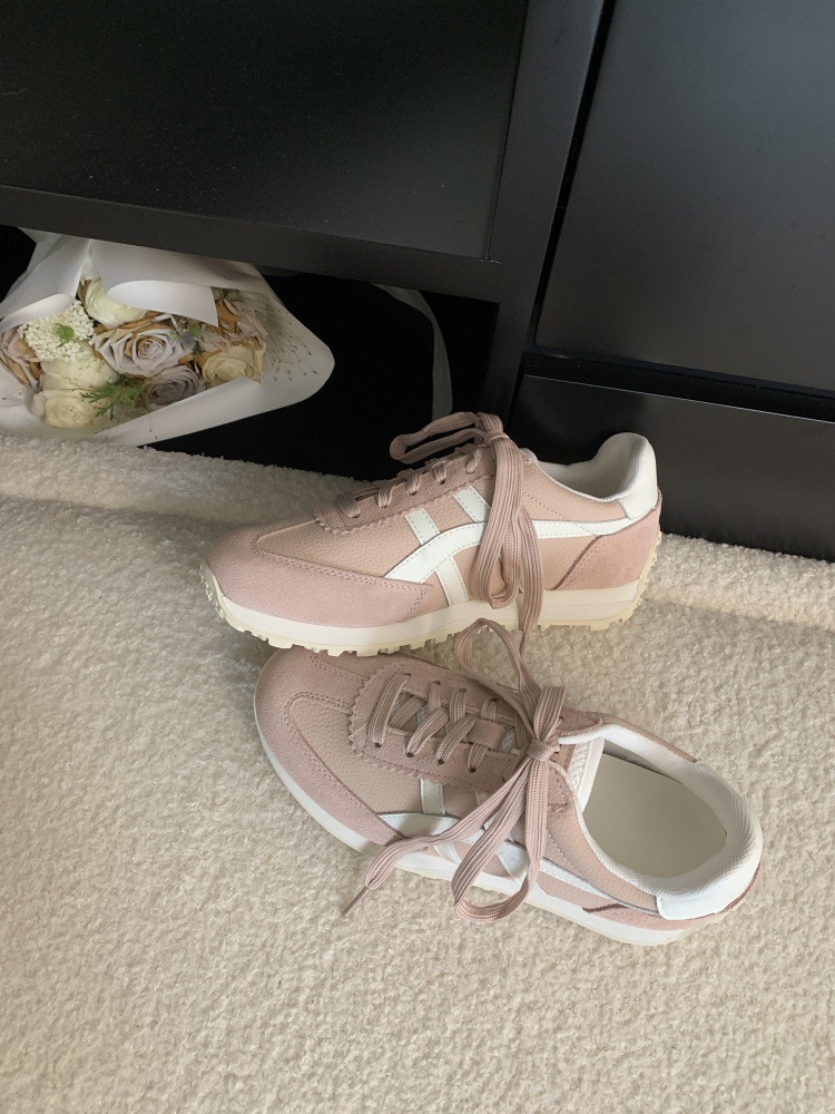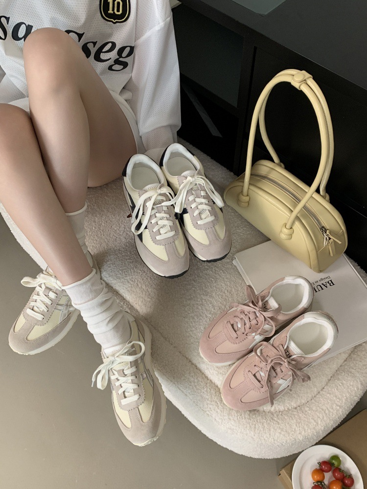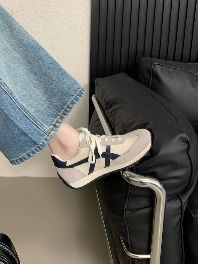 이른 봄 2025 새로운 낮은 굽 플랫 두꺼운 밑창 레이스 업 라운드 토 캐주얼 스포츠 보드 신발 여성용 트렌디 신발