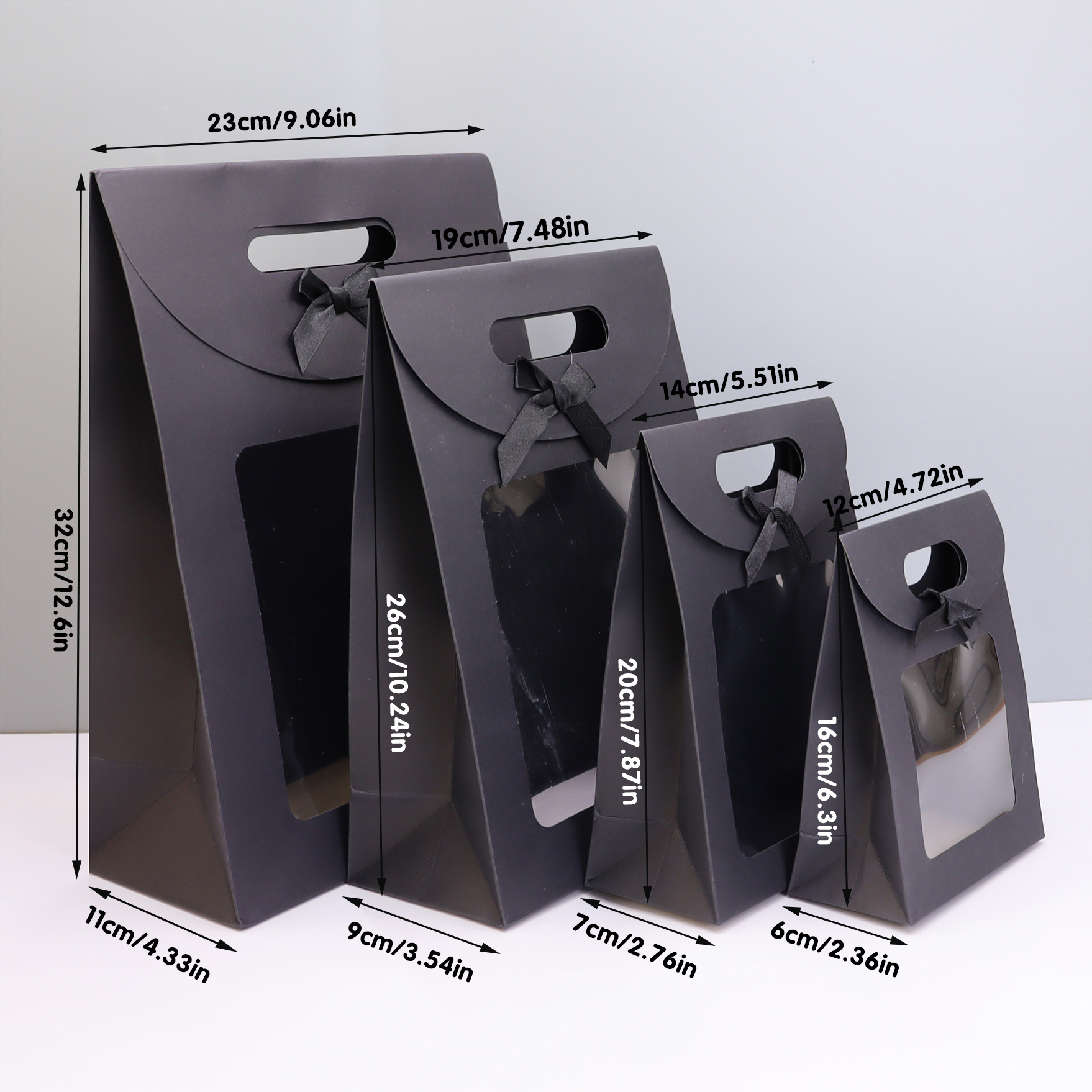 크리스마스 창 선물 가방 흰색 카드 검은 카드 크래프트 종이 가방 활 휴대용 투명 플립 선물 가방