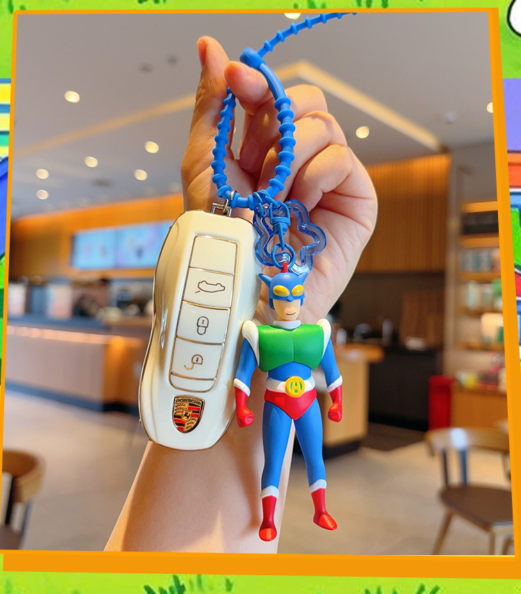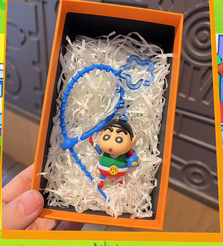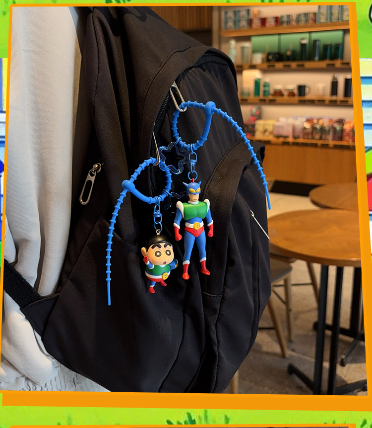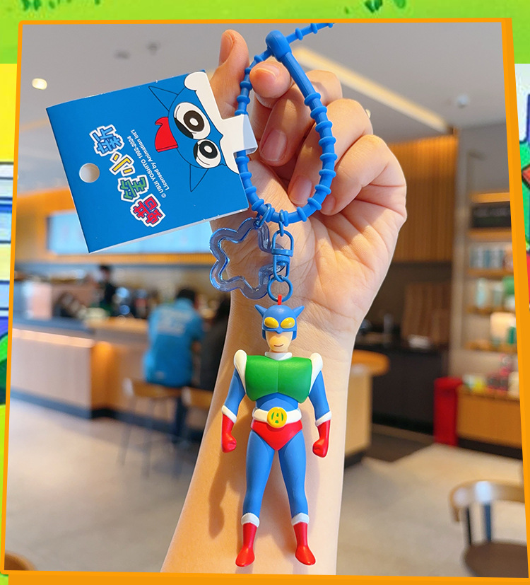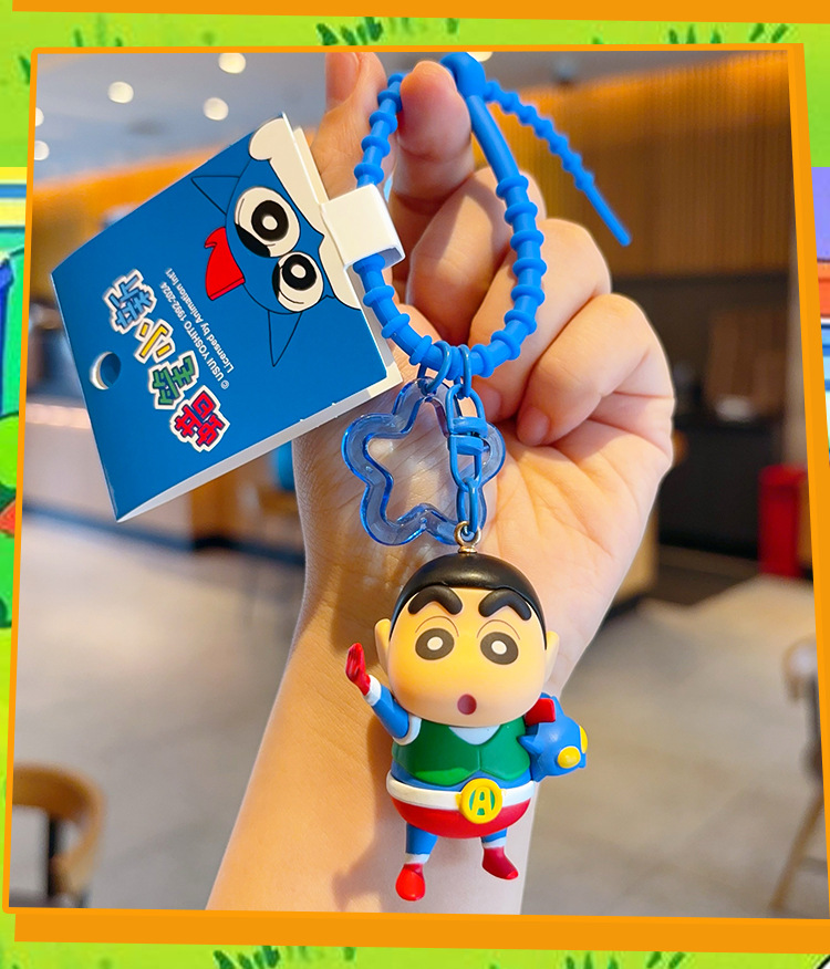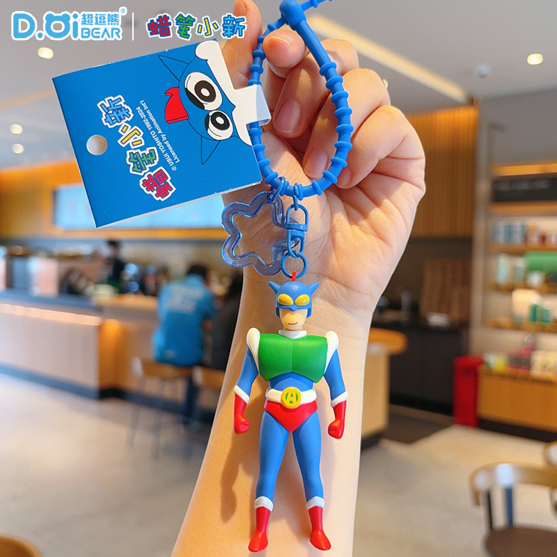 정품 크레용 작은 새로운 키 체인 만화 동적 슈퍼맨 자동차 키 체인 트렌디 브랜드 귀여운 장난감 가방 펜던트