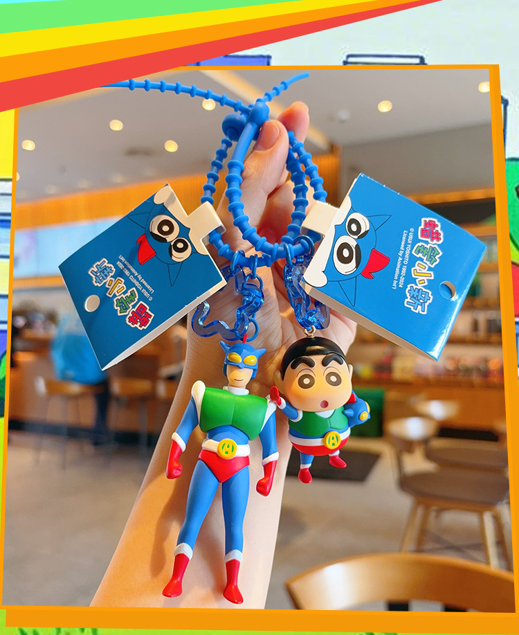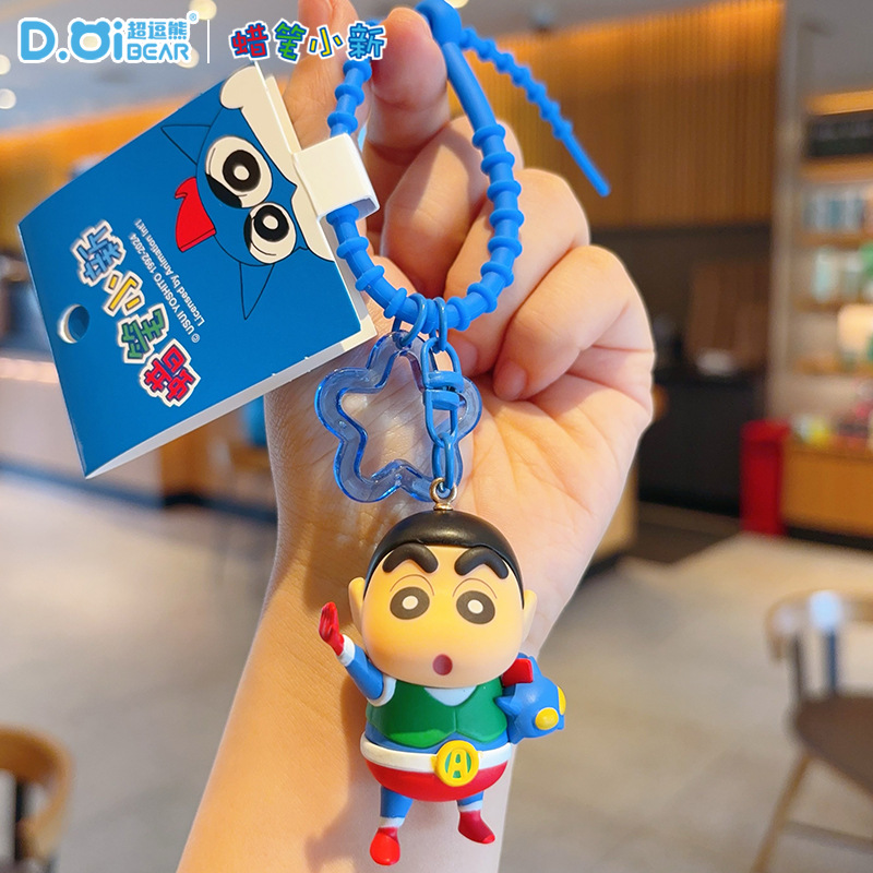 정품 크레용 작은 새로운 키 체인 만화 동적 슈퍼맨 자동차 키 체인 트렌디 브랜드 귀여운 장난감 가방 펜던트스토어 가기