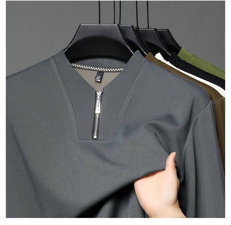2025 년 새 봄 가을 남자 지퍼 스웨터 하이 퀄리티 남성 최고 젊은 및 중년 긴팔 티셔츠베이스 셔츠