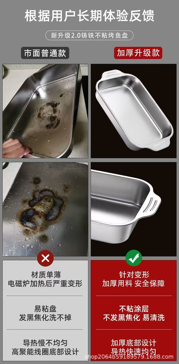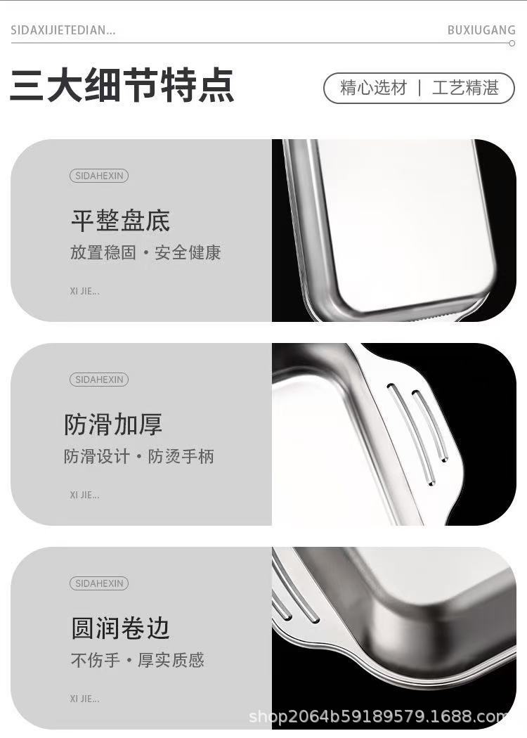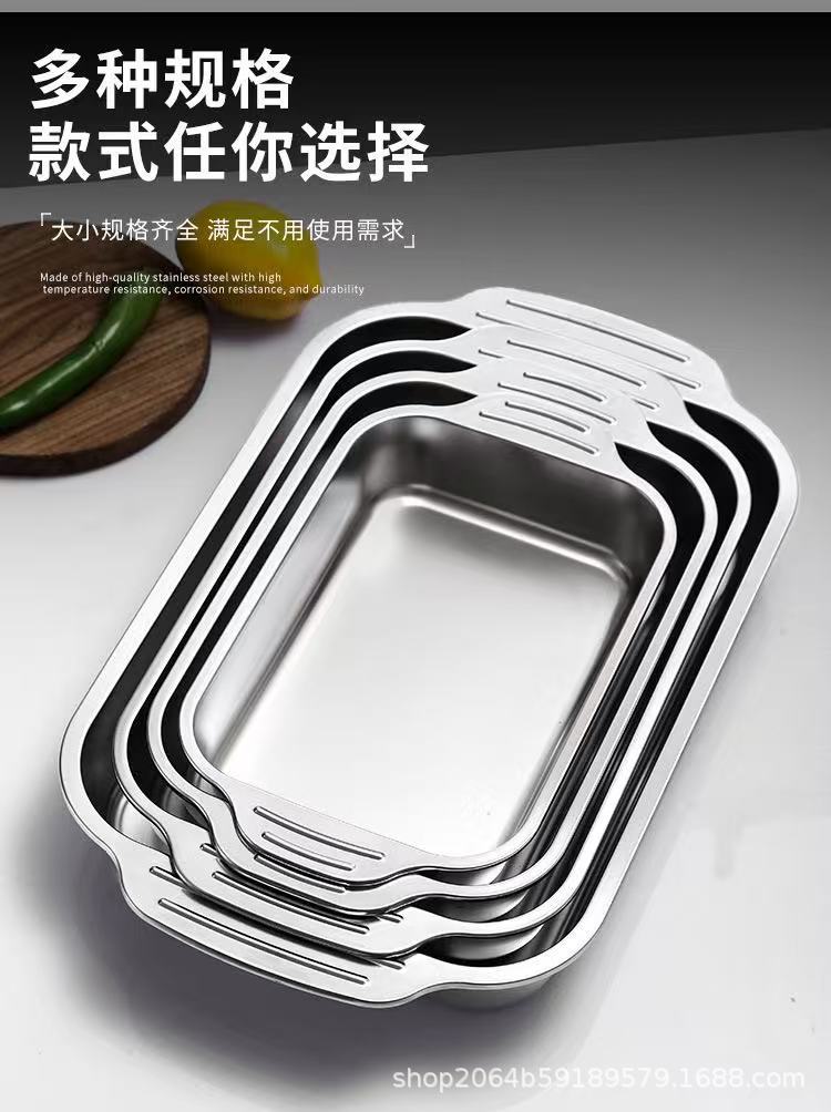 두꺼운 스테인레스 스틸 구운 어판 직사각형 플레이트 상업용 가정용 사각 트레이 플레이트 김이 쌀 플레이트 바베큐 플레이트 도매스토어 가기