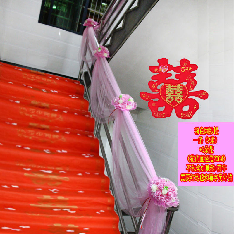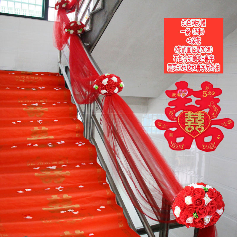 웨딩 계단 난간 거즈 도로 리드 장식 웨딩 용품 웨딩 룸 장면 레이아웃 웨딩 플라워 볼 꽃 무료 배송