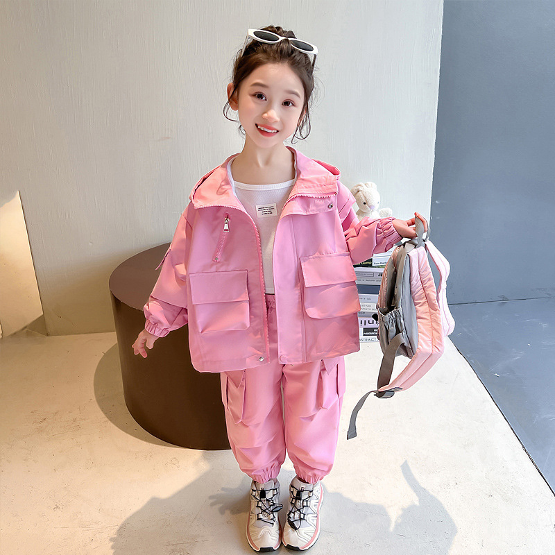 소녀 도구 세트 봄과 가을 2025 새로운 서양 스타일 유행 유행 멋진 착용 어린이 봄 투피스 세트