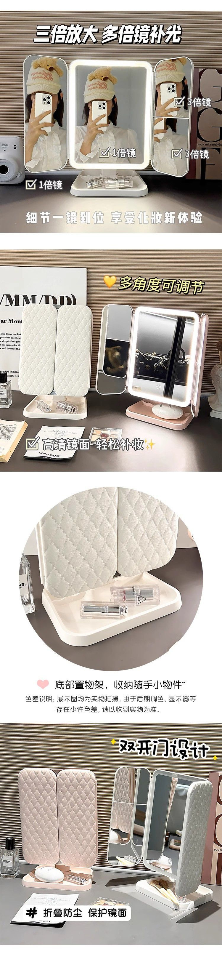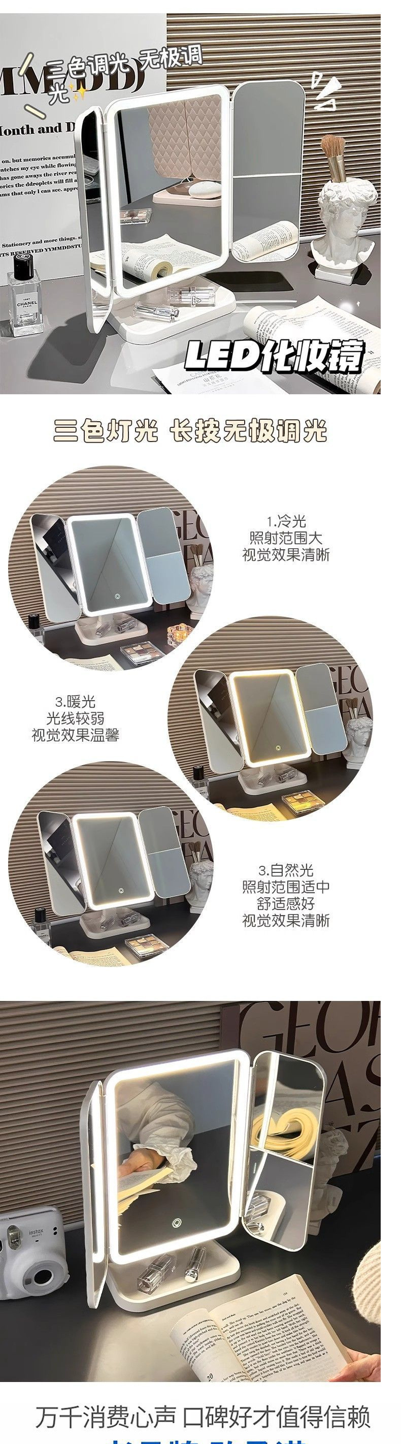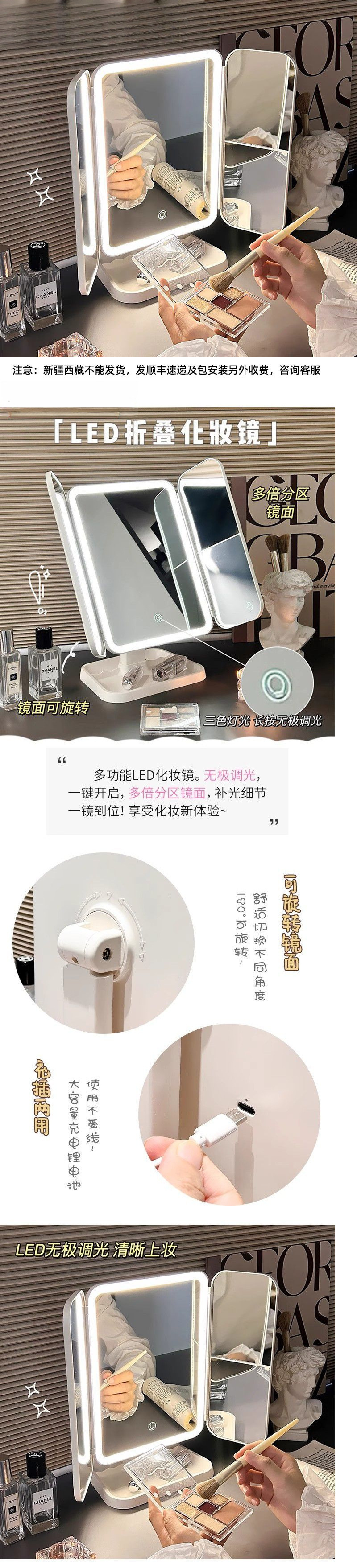 가벼운 학생 기숙사 데스크톱 3 면 접이식 가정용 데스크탑 휴대용 여신 메이크업 미러와 Led 메이크업 미러