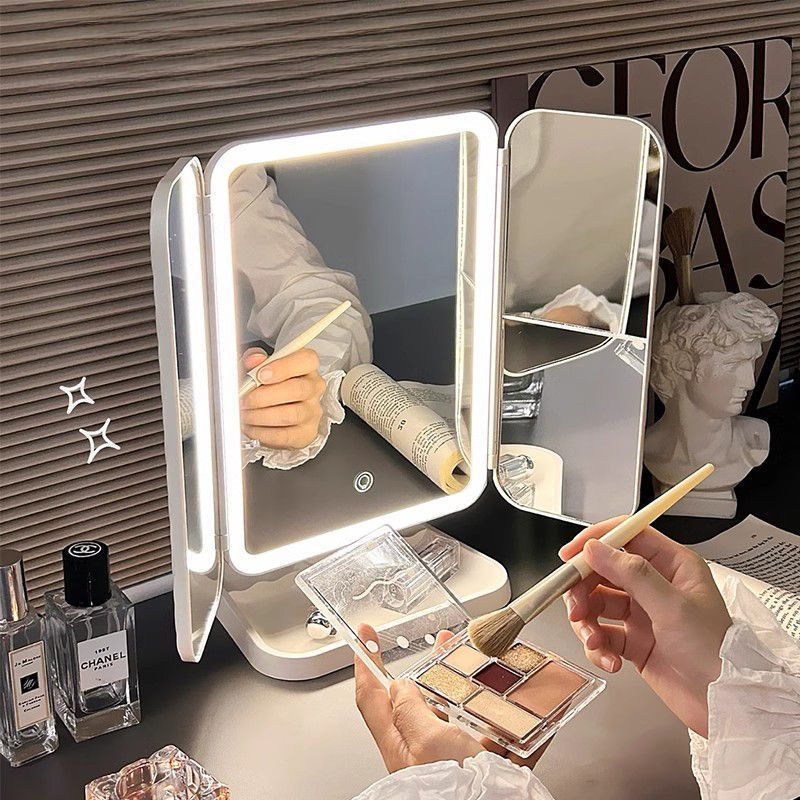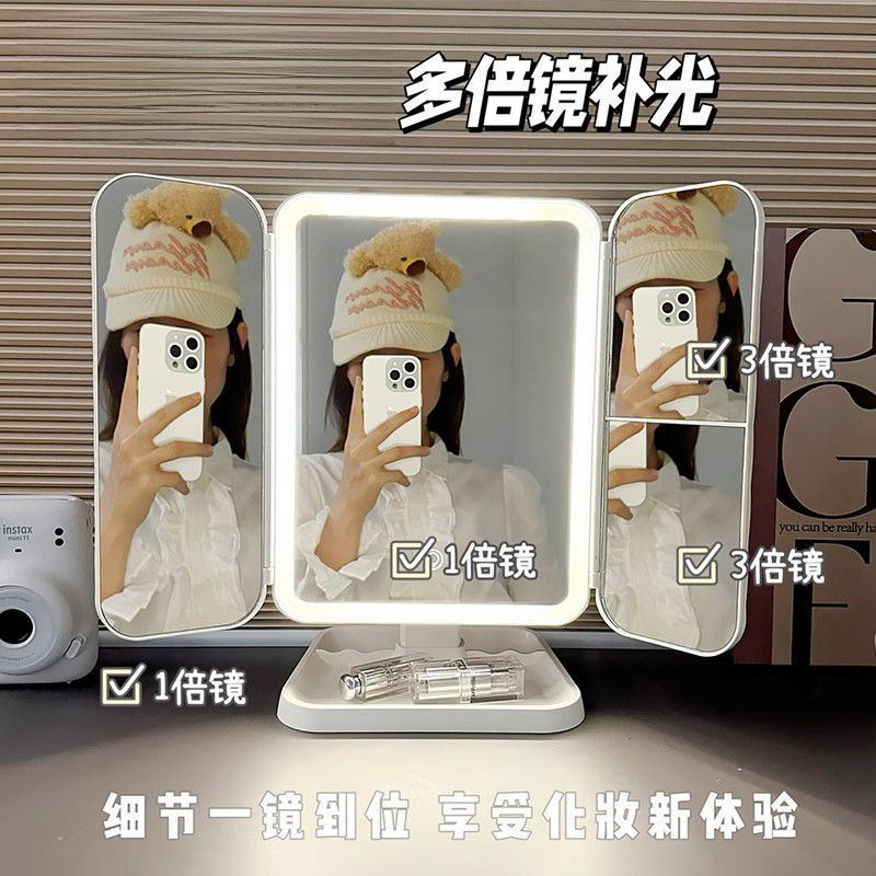 가벼운 학생 기숙사 데스크톱 3 면 접이식 가정용 데스크탑 휴대용 여신 메이크업 미러와 Led 메이크업 미러스토어 가기